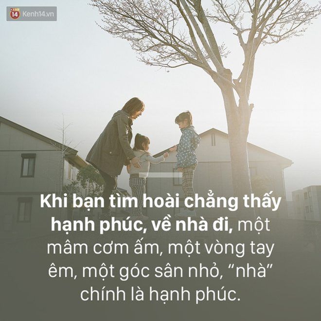15. Khi bạn tìm hoài chẳng thấy hạnh phúc, về nhà đi, một mâm cơm ấm, một vòng tay êm, một góc sân nhỏ, “nhà” chính là hạnh phúc.