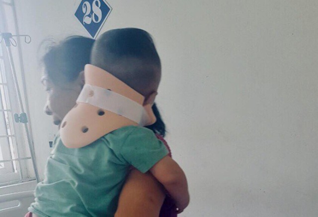 Hiện cháu bé đang được điều trị tại Bệnh viện Đa khoa TP Vinh. Các bác sĩ xác định bé chỉ bị xây xước nhẹ và chấn thương phần mềm.