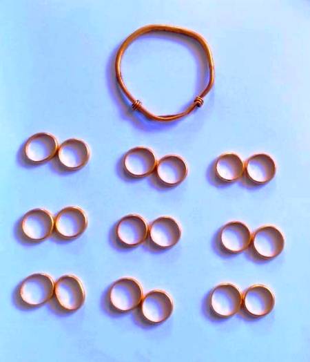 Còng và nhẫn vàng nhặt được từ bao lúa. Ảnh: Tri Nguyễn.