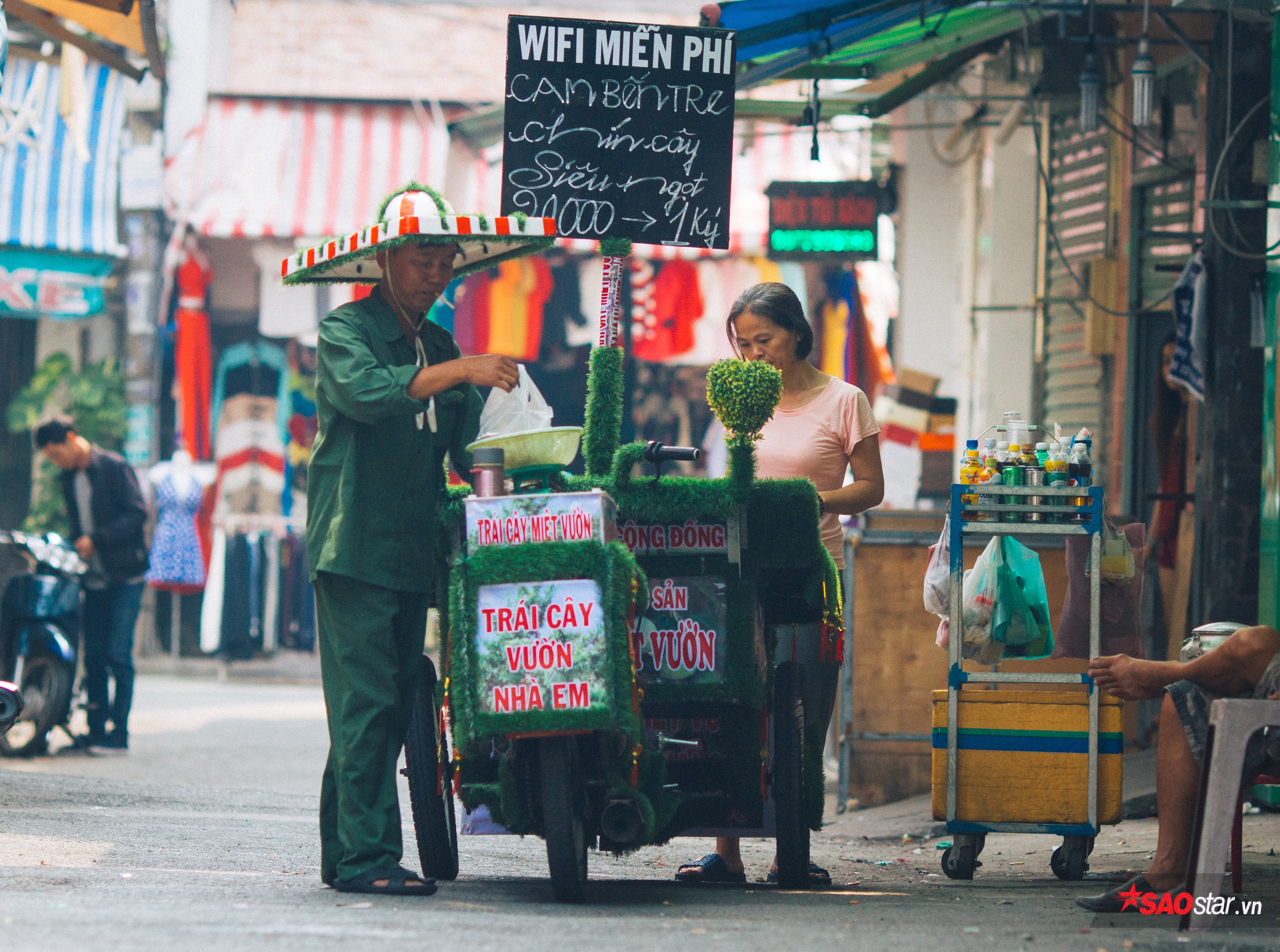 Chiếc xe màu xanh đáng yêu chuyên bán trái cây miệt vườn khiến người Sài Gòn sẽ bất giác mỉm cười nếu bắt gặp.