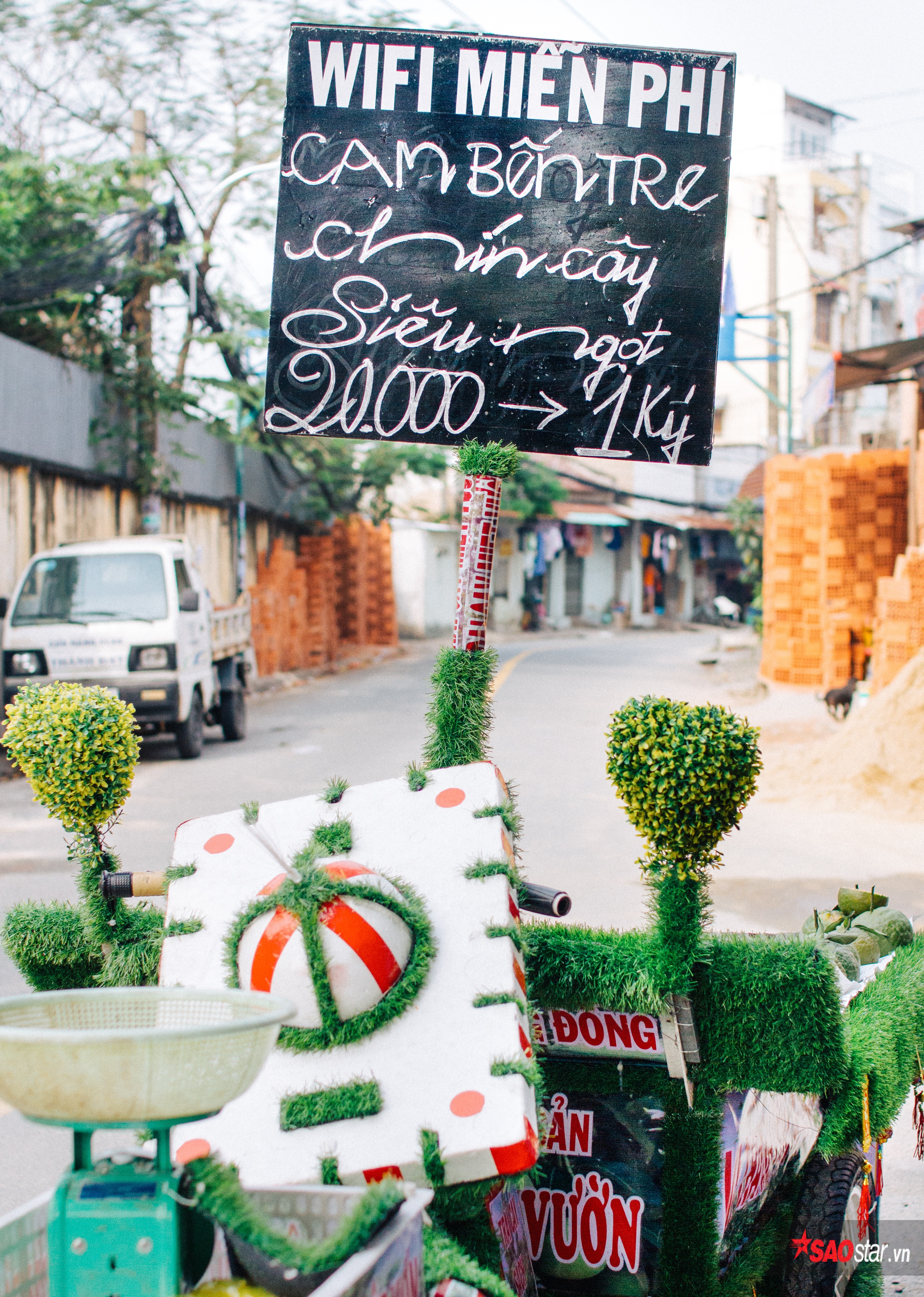 Theo đó, chiếc xe hàng rong này là của anh Hoàng Văn Hiển (40 tuổi, ở Q. Gò Vấp, TP. HCM). Điều đặc biệt là “chẳng giàu có gì”, anh Hiển chỉ dám mua xe cũ với giá 3 triệu đồng , nhưng anh đã cất công trang trí bằng cỏ xanh nhân tạo, hoa, loa nhạc, mũ bảo hiểm làm từ nắp thùng xốp, và gắn wifi miễn phí… với chí phí hơn 3 triệu đồng chỉ để mang lại niềm vui cho mọi người.