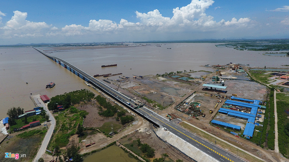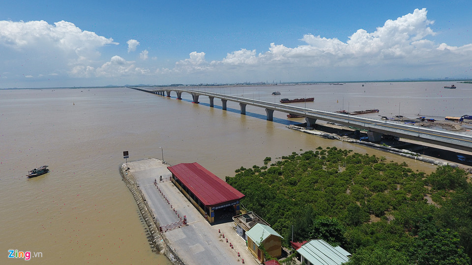 Điểm cuối dự án tại vị trí tiếp giáp cổng cảng cửa ngõ Lạch Huyện (huyện Cát Hải, Hải Phòng). Người dân Hải Phòng kỳ vọng cây cầu sẽ giúp kinh tế ở huyện đảo Cát Hải phát triển.