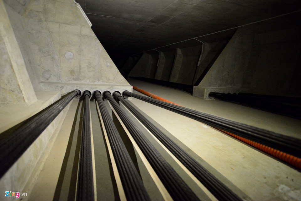 Khác với nhiều công trình giao thông, cầu vượt biển dài nhất Việt Nam có một “đường hầm” đặc biệt. Đường hầm thực tế là chiếc hộp kỹ thuật khổng lồ của công trình thế kỷ này. Hệ thống cáp lắp bên trong đường hầm đảm bảo sự vận hành của cầu vượt biển.