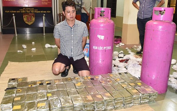 Tại đây, cơ quan công an phát hiện trên xe tải BKS 29H. 86.82 có 1 bình gas công nghiệp màu xanh, phía cuối bình có khớp nối, qua kiểm tra, lực lượng chức năng phát hiện trong bình có chứa 170 bánh heroin.