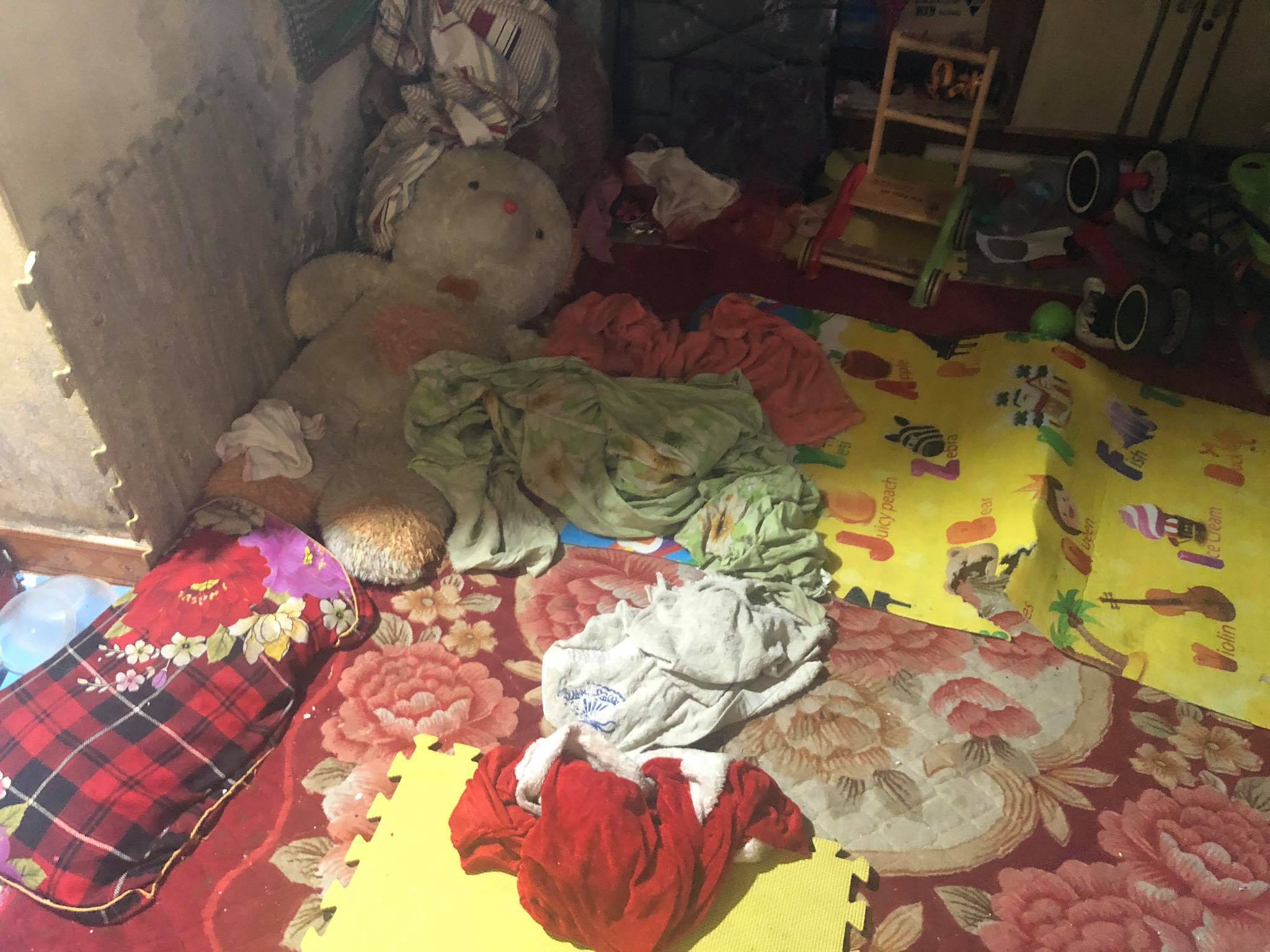 Ngôi nhà ông Toàn cùng cháu bé sinh sống chất đầy rác bẩn.