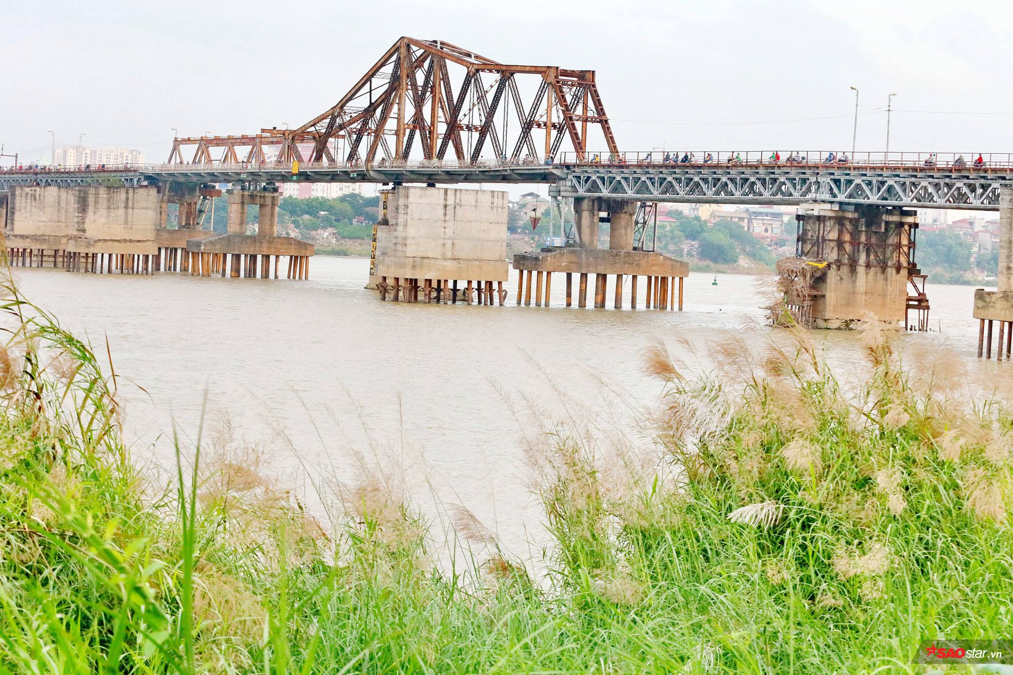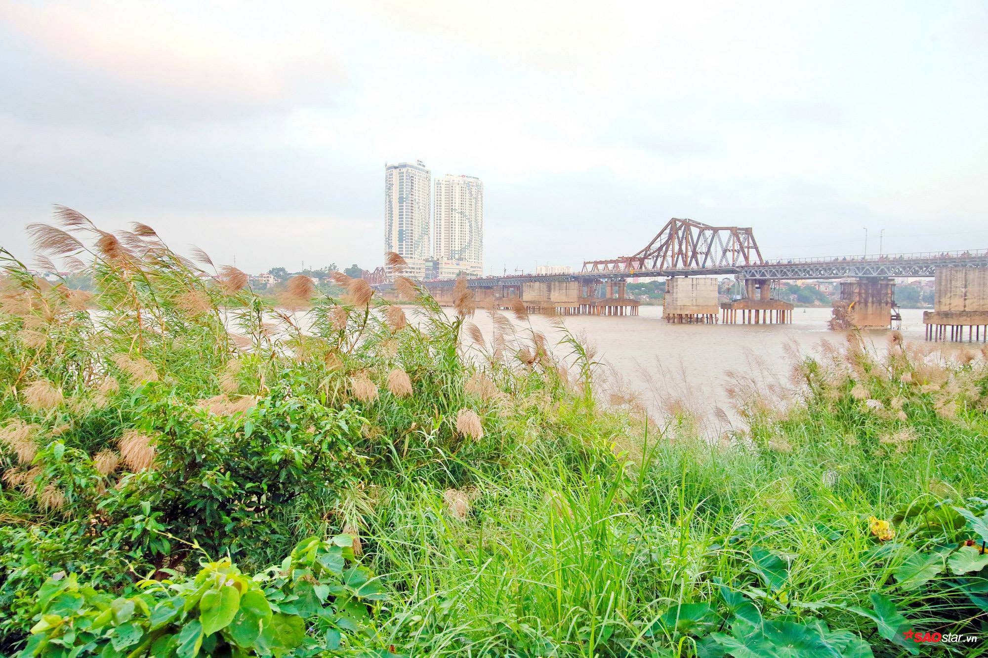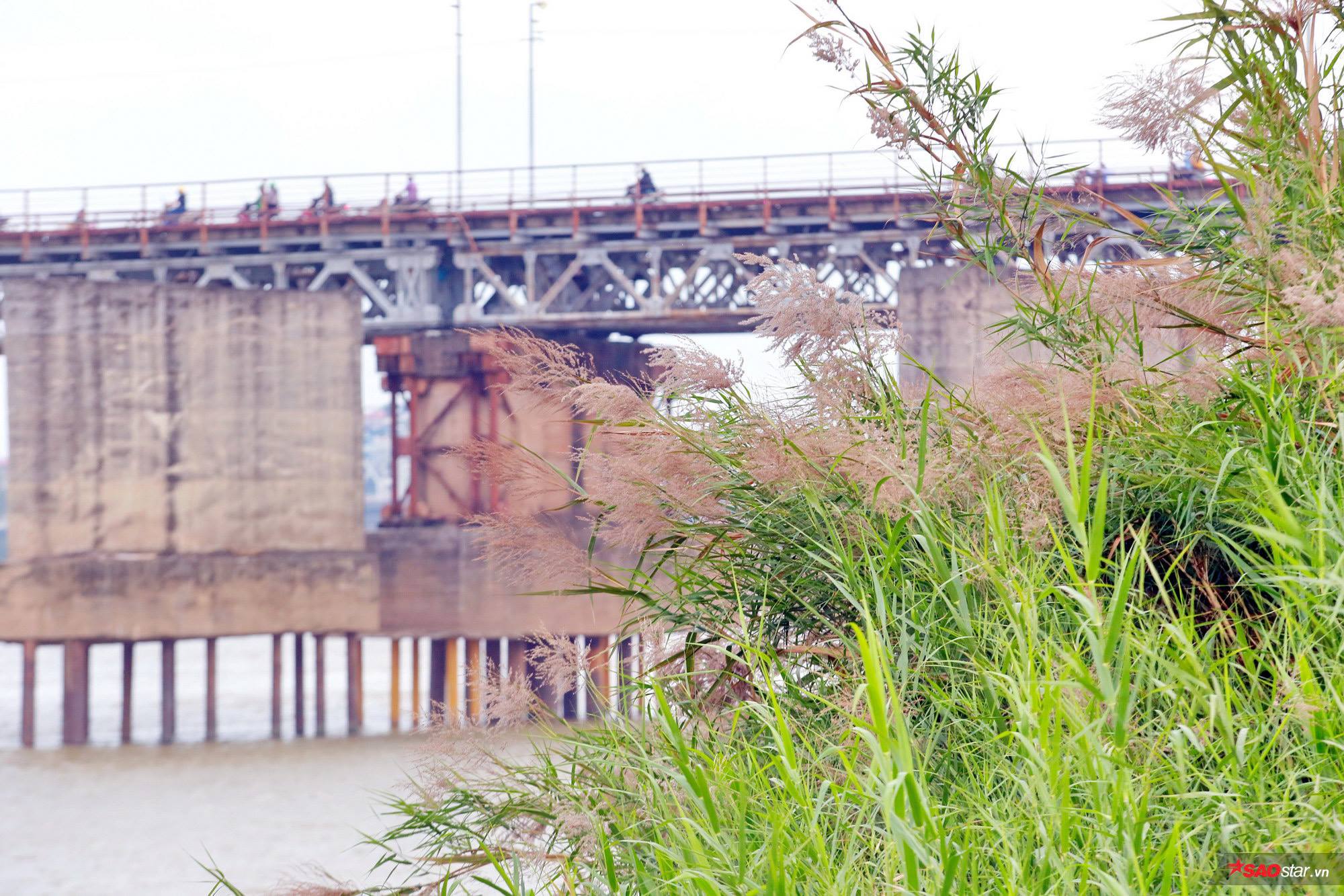 Thời gian cầu Long Biên đẹp nhất có lẽ là mùa lau nở. Giống như một loài hoa báo đông, hoa lau mang màu trắng muốt lạnh lẽo và chỉ nở rộ lúc gió mùa bắt đầu tràn về. Ít ai nghĩ dáng vẻ mộc mạc, đồng nội của những bông lau dại kia khi phủ trắng những bãi đất trống dọc mặt nước sông lại đẹp đến như vậy.