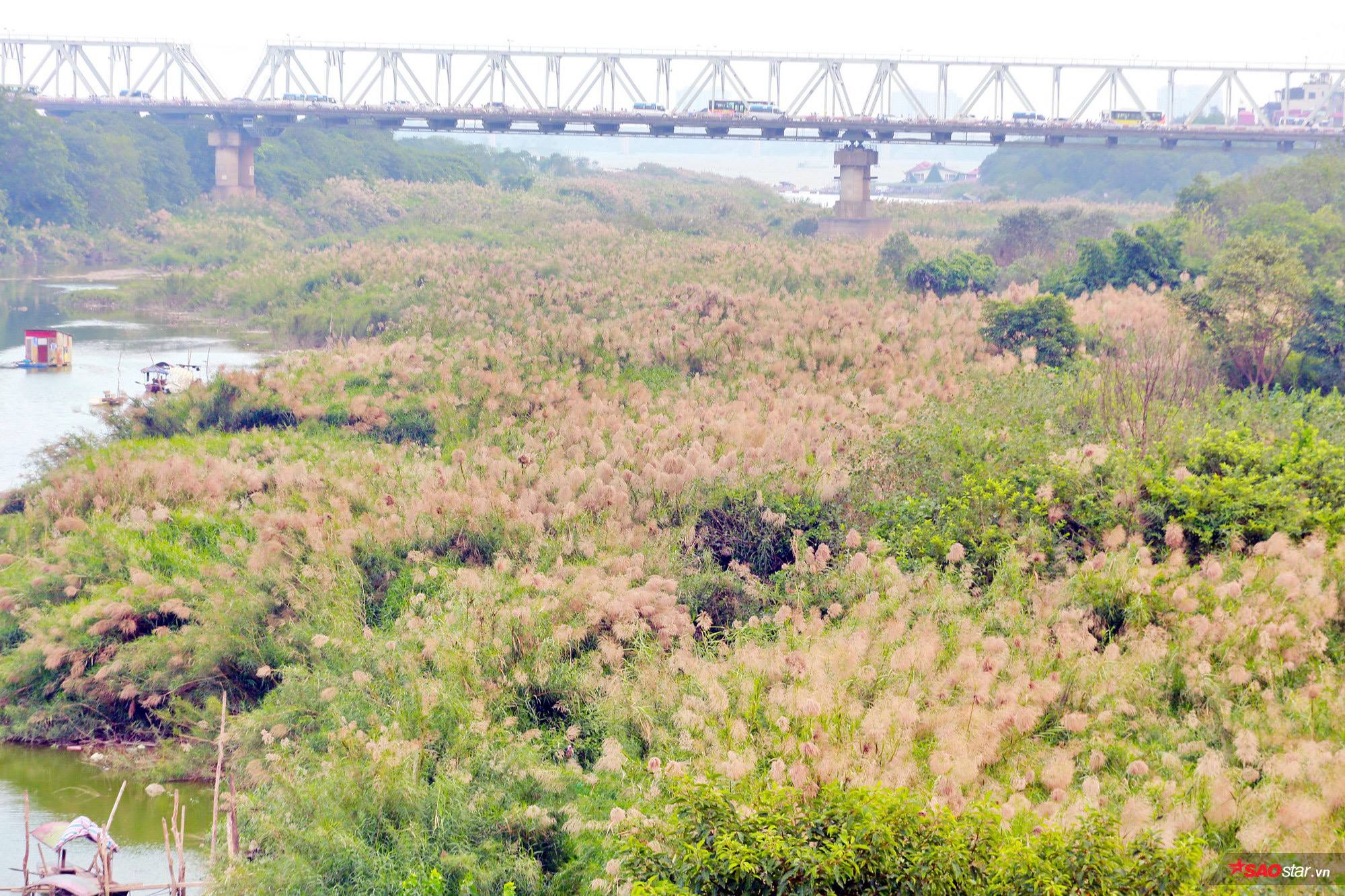 Đứng trên cầu Long Biên nhìn xuống, người ta có cảm giác, hoa lau trải dài như ngút ngàn tầm mắt, che kín suốt một mảnh đất phù sa màu mỡ phía dưới.