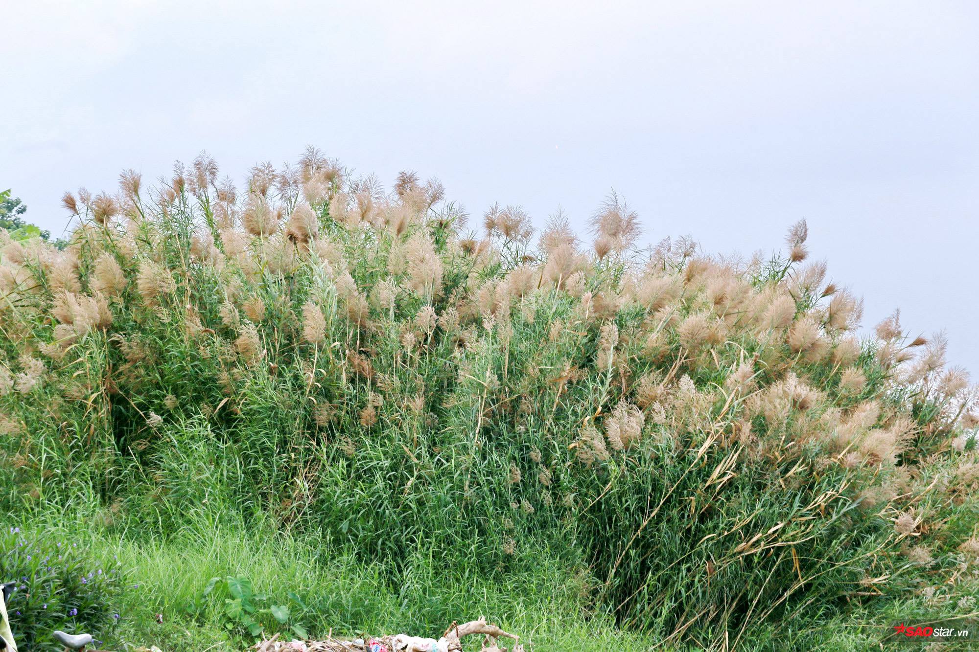 Bãi cỏ lau này trải dài, bao phủ hầu như khắp khu vực bãi giữa sông Hồng.