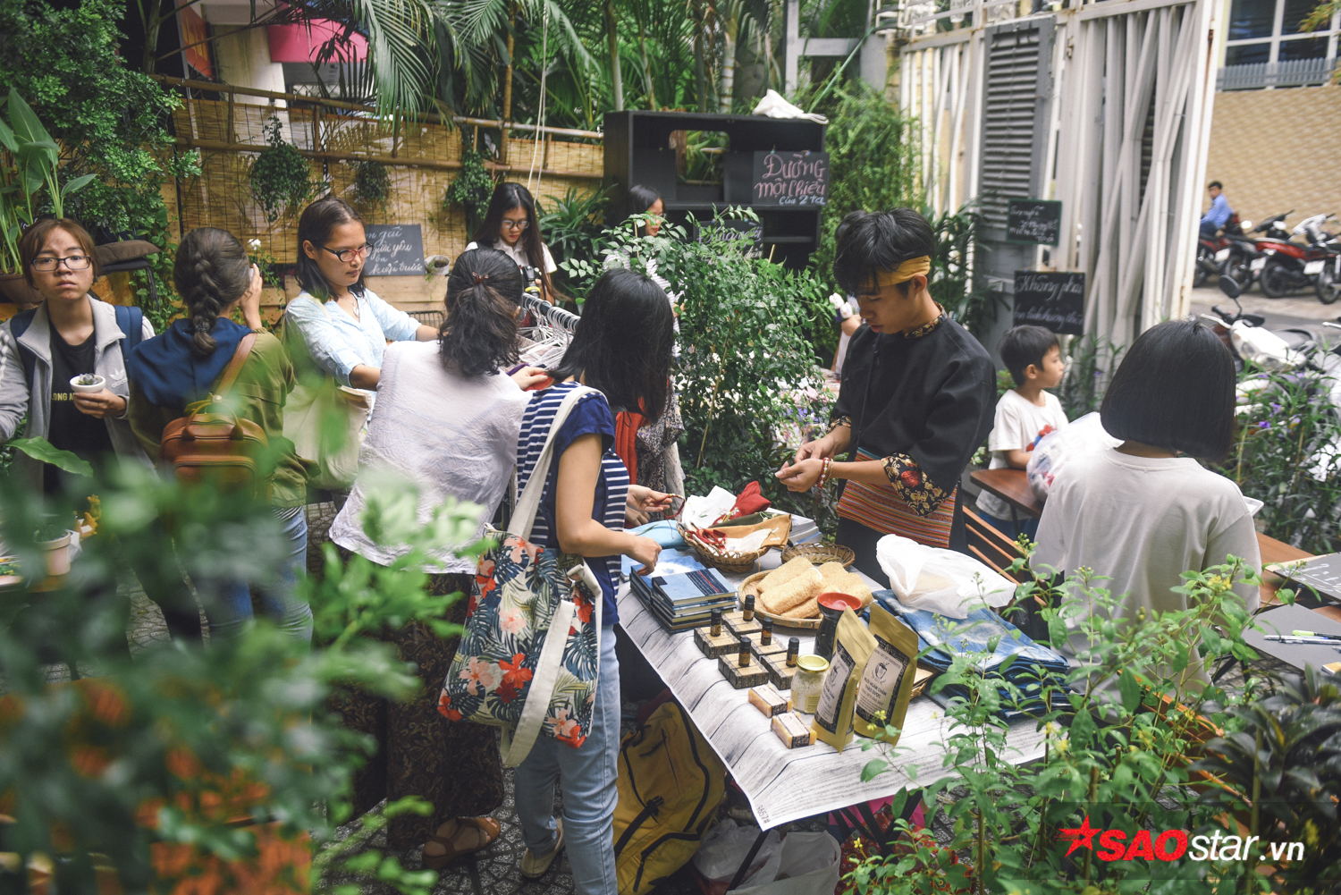 Kéo dài từ 9h sáng đến 9h tối, phiên chợ đặc biệt này thu hút hàng trăm bạn trẻ tới tham quan.