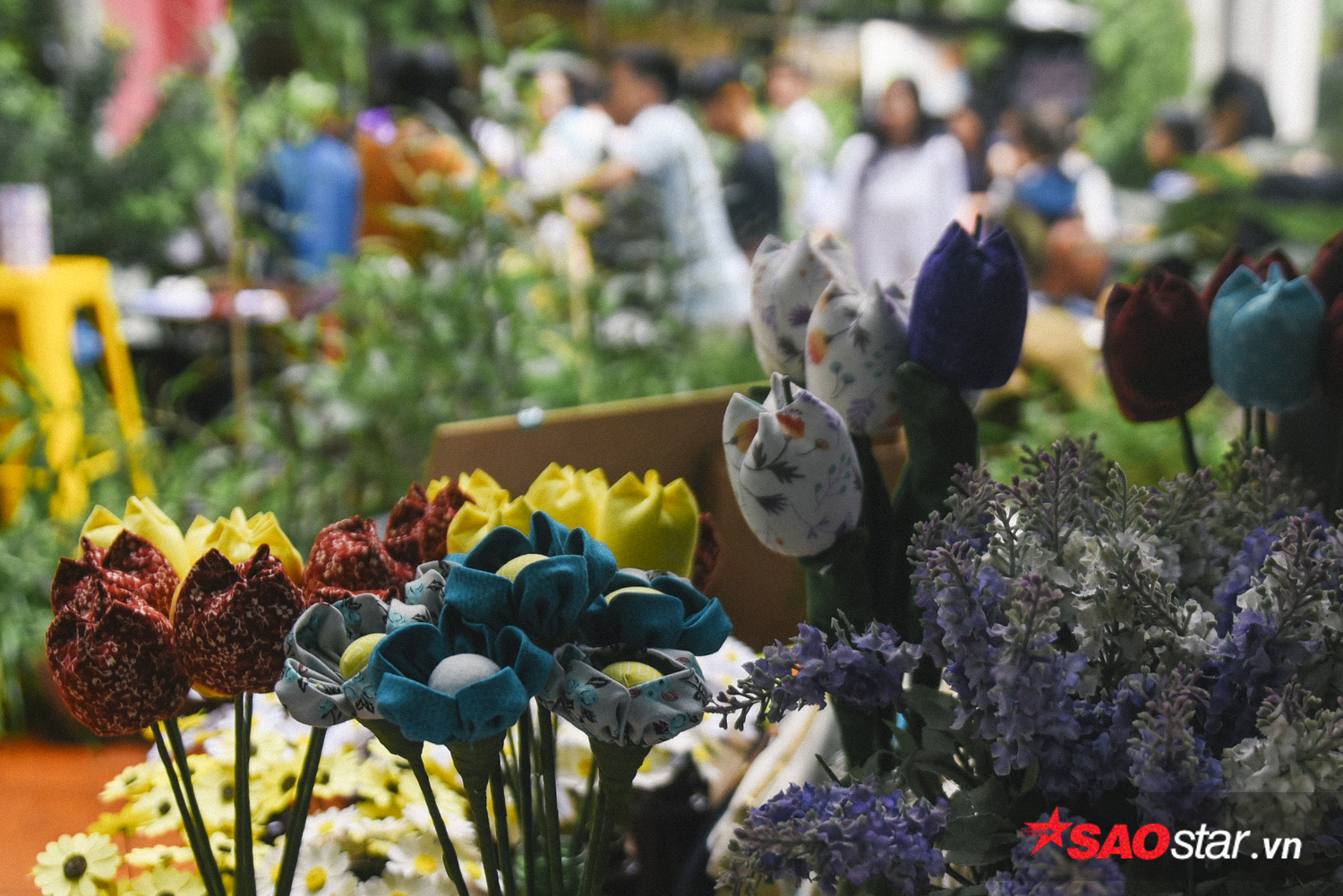 Những chiếc bông vải, bông giấy,… handmade vô cùng bắt mắt.