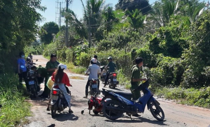 Theo Người lao động thông tin, sau khi đâm chị Thu, ông Vẹn đã treo cổ tự tử tại một cây tràm, cách hiện trường khoảng 5 m.
