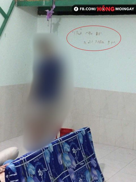 Lực lượng chức năng xác định dòng chữ “Trả cho em, anh đi nha em” được cho là của nạn nhân viết bằng máu của mình. Nguyên nhân vụ việc được nhận định là do buồn chuyện tình cảm nên người chồng đã treo cổ tự sát.