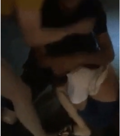 Về phần bồ nhí (áo trắng), biết sẽ không có ai bênh vực mình nên chỉ cố gắng bấu víu vào nam thanh niên. Sự việc thu hút sự chú ý của đông đảo mọi người.