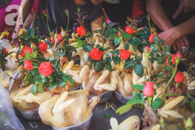 Hình như chỉ có ở Hà Nội mới có hàng gà luộc ngậm hoa hồng sinh động, đẹp mắt như thế này