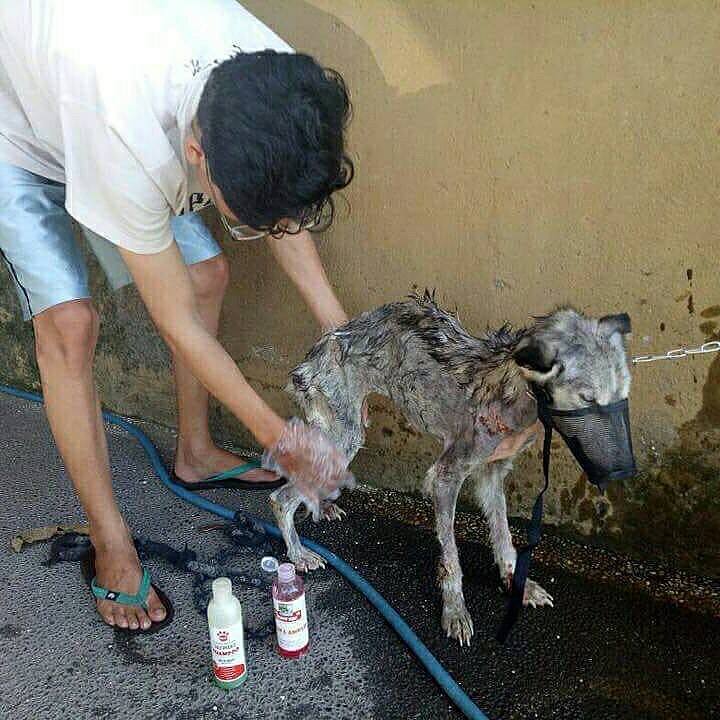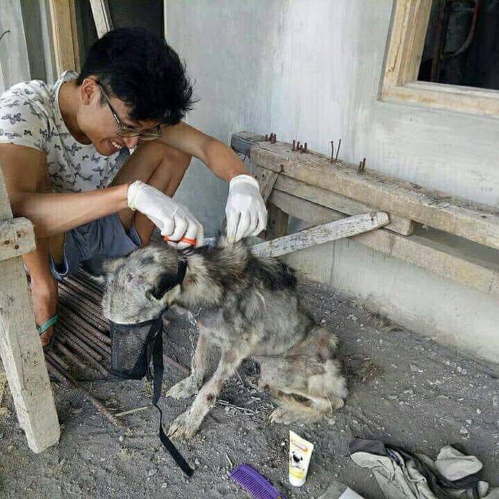 Thế nhưng, có những chú chó may mắn được “hồi sinh” bởi những tấm lòng cao cả. Cách đây 10 tháng, tại Indonesia, chàng trai tên Rico Soegiarto (26 tuổi) đã bắt gặp một chú chó giống Siberian Husky đang trong tình trạng suy dinh dưỡng nghiêm trọng.