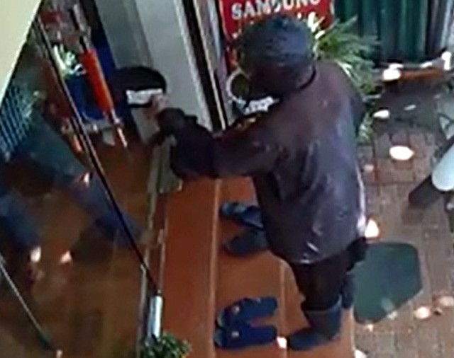 Kể lại sự việc, chị Nguyễn Hồng Hiển (chủ cửa hàng điện thoại trên đường Bưởi) cho biết, vào khoảng 13h15 ngày 6/8 vừa qua, khi gia đình đang nghỉ trưa thì tên ăn xin này có mặt tại trước cửa hàng và định đẩy cửa vào. Tuy nhiên, nhận thấy dấu hiệu bất thường nên chồng chị Hiển đã đứng chặn cửa từ bên trong không cho vào.