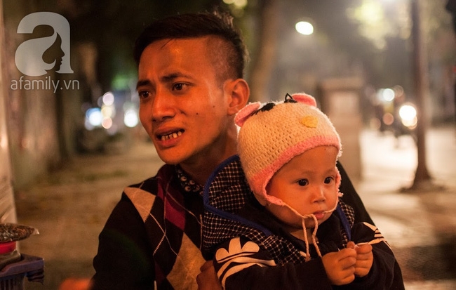 Bán hết nhà cửa, giờ Khiêm ôm con đi lang thang lấy lòng thương của người dân (ảnh: Hưng Vũ)