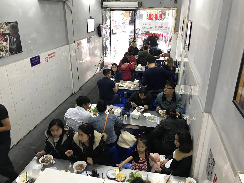 Quán bún chả Hương Liên luôn tấp nập khách vào ăn.