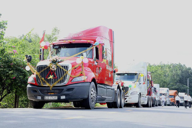 Việc đón dâu bằng xe đầu kéo như vậy là rất vui…(Ảnh: NLĐ).