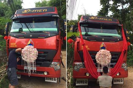 Trước đó tại Cao Bằng cũng từng có một đám cưới rước dâu bằng xe container hạng nặng gây ấn tượng. Hai chiếc Howo A7 màu đỏ rất hợp với không khí của một đám cưới.