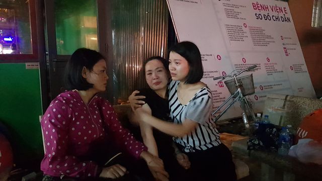 Người thân của học sinh L. túc trực tại viên E đêm qua. (Ảnh: Hà Cường)
