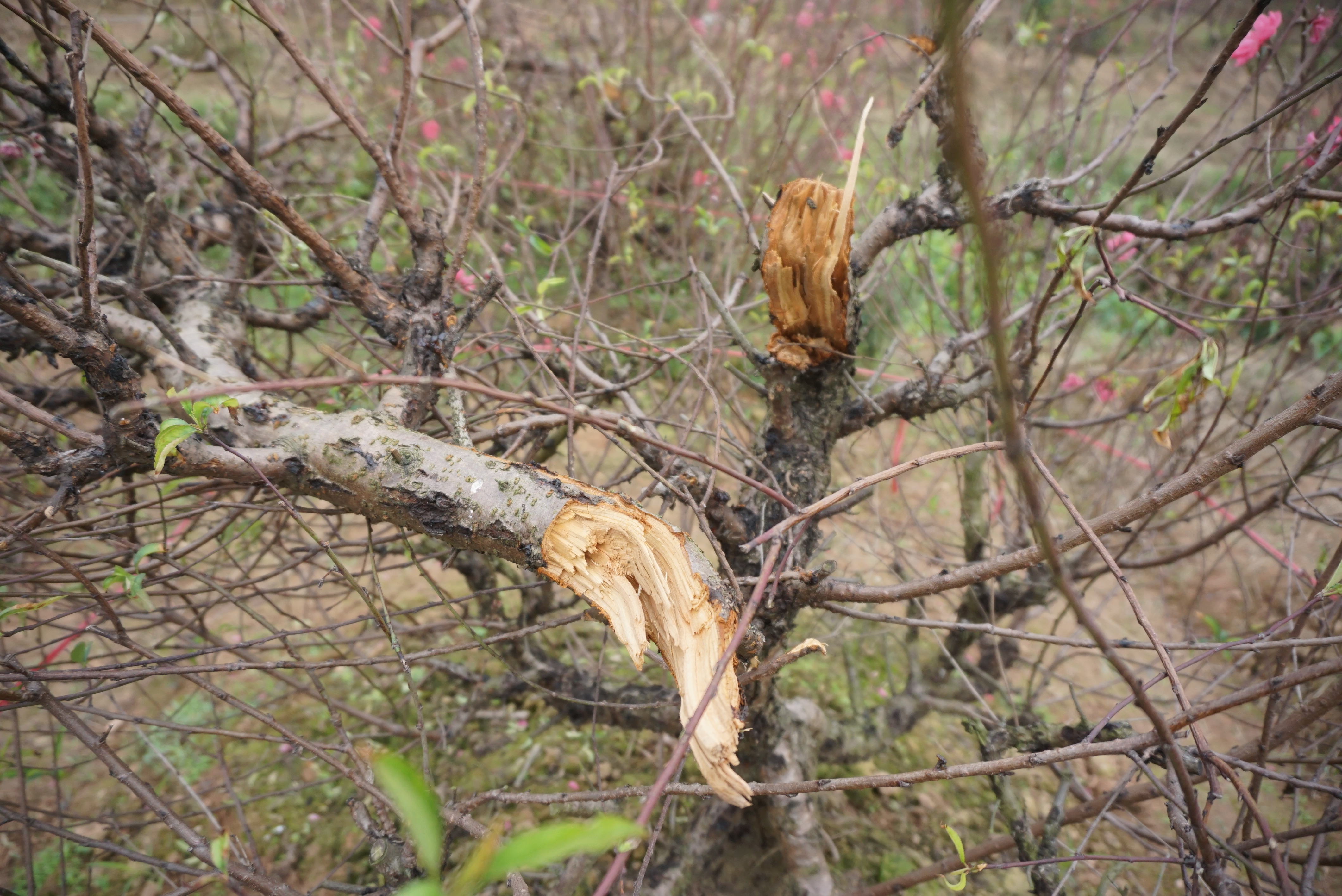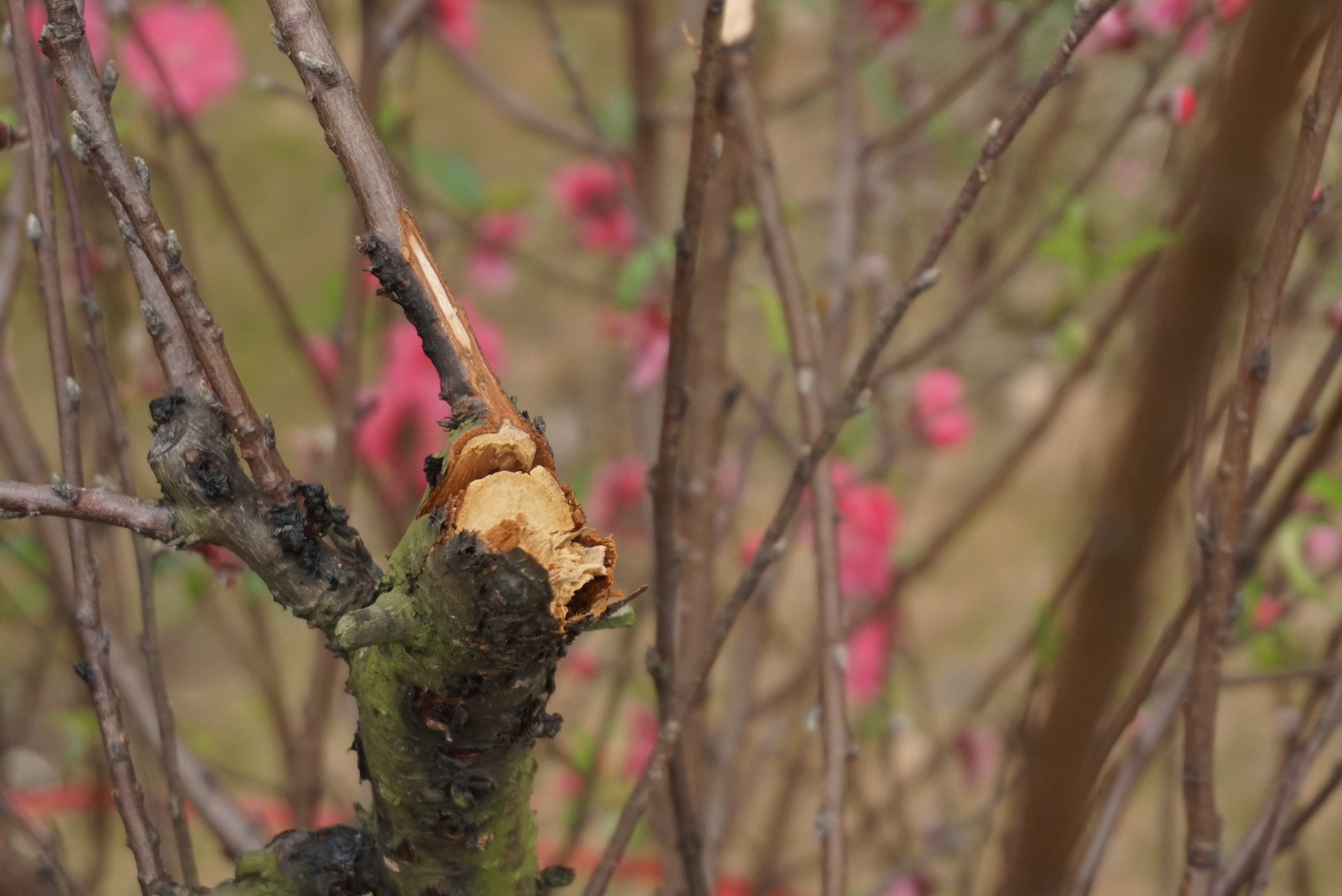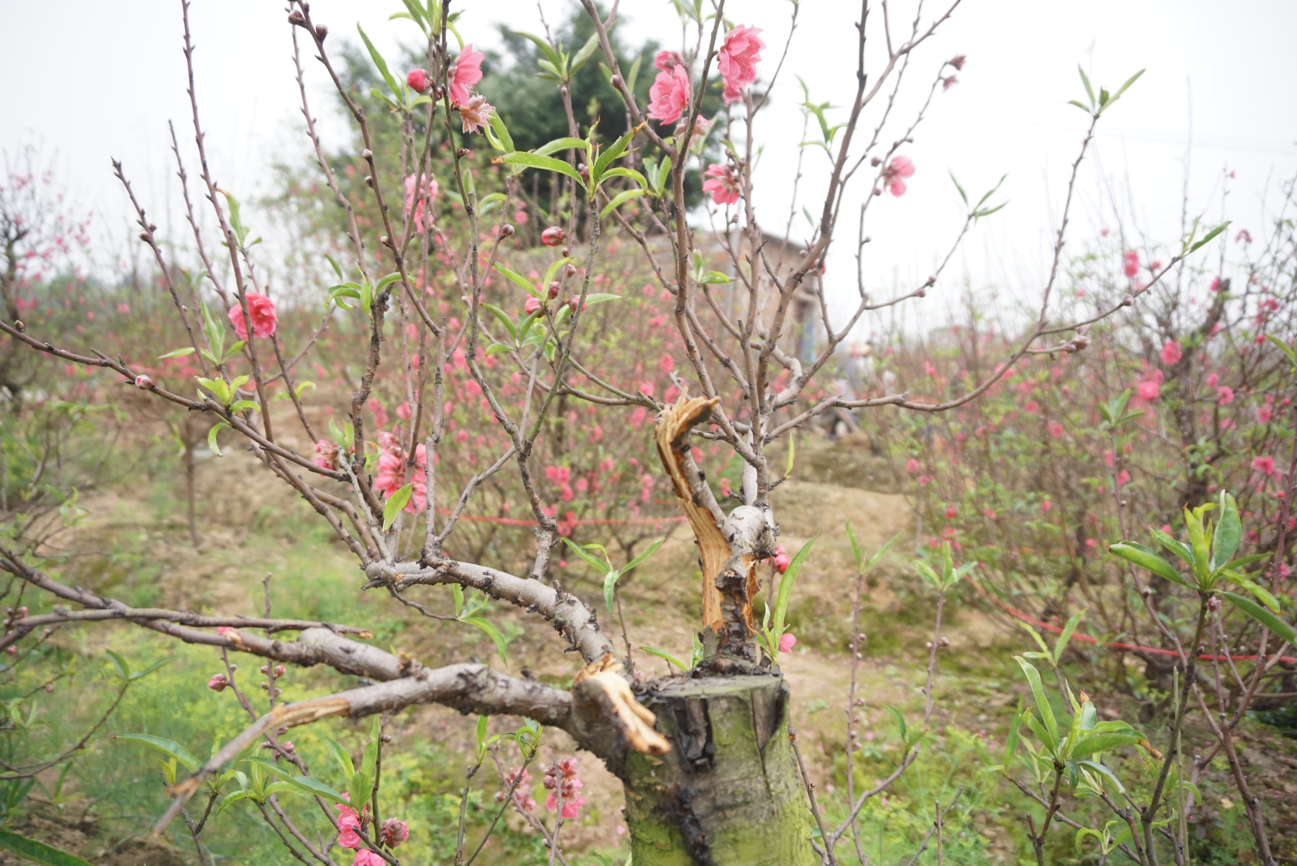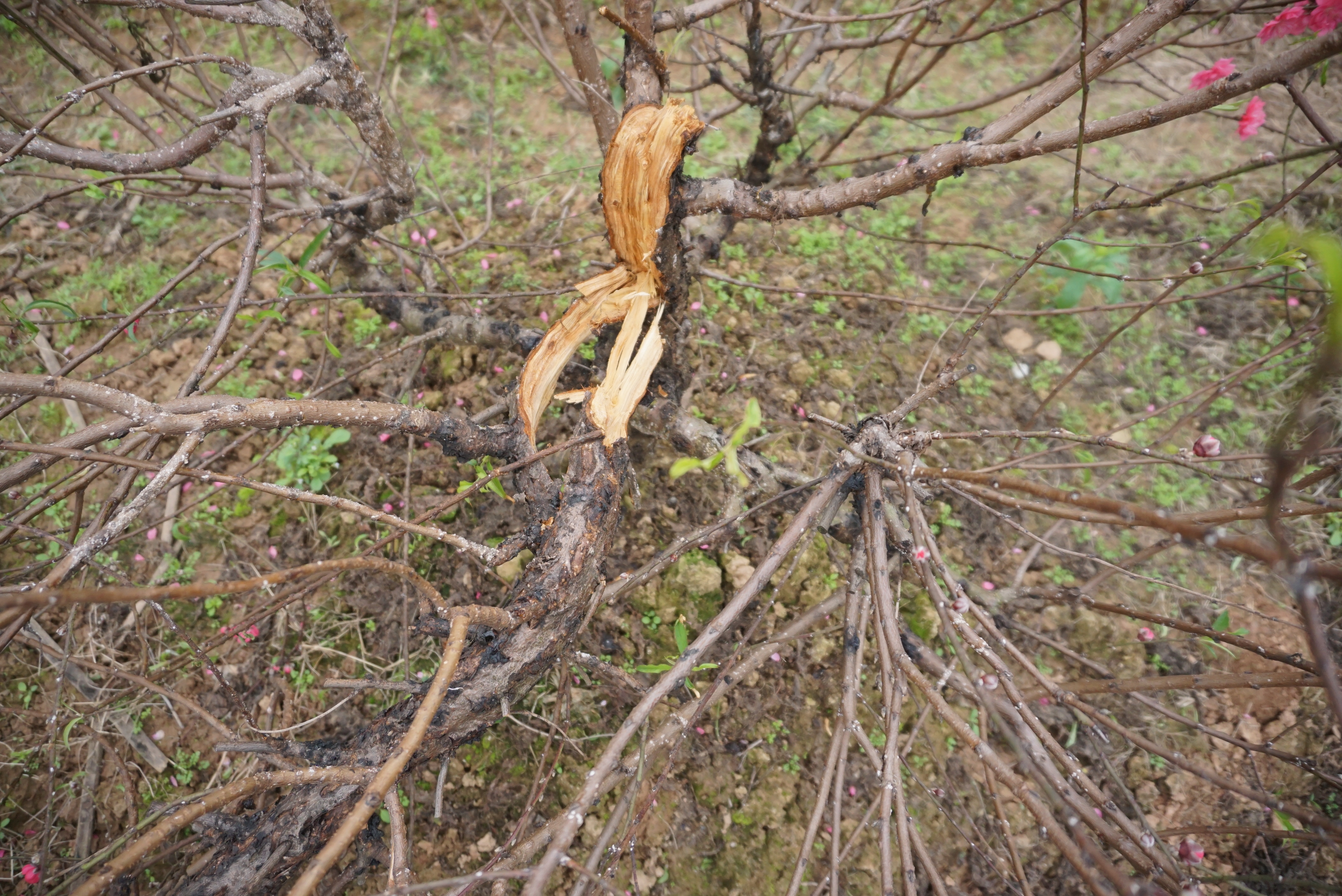 Cây đào thế bị chặt ngang ngọn.