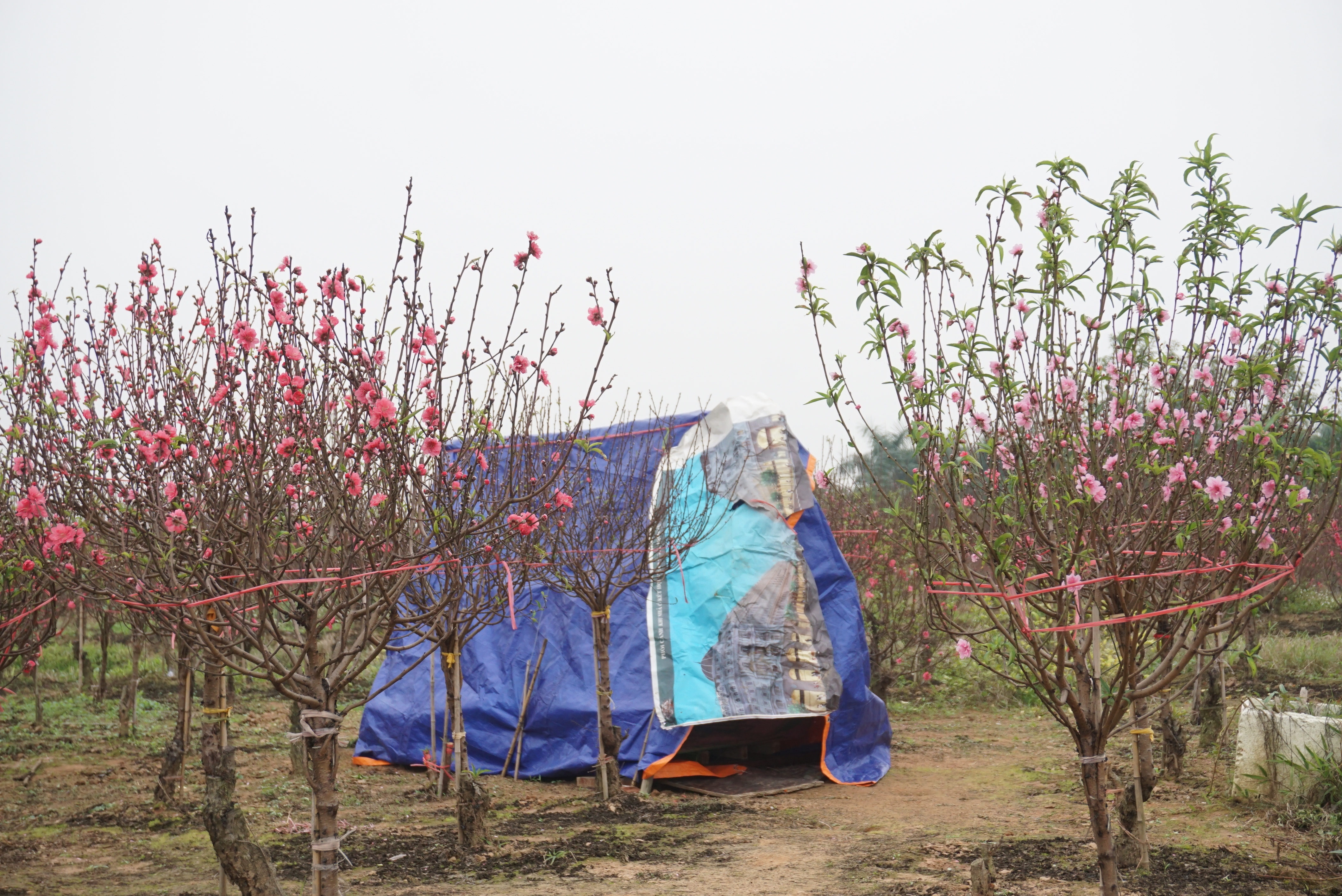 Một số người dân dựng lều bạt canh đào tránh bị chặt phá, trộm.