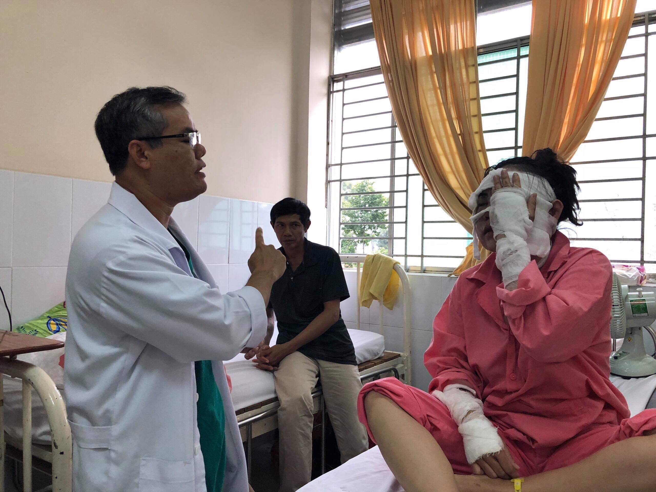 Tại khoa cấp cứu, bệnh nhân Ng. được chuyên khoa về mắt hỗ trợ xử lý. “Đánh giá ban đầu thì bệnh nhân bị phỏng 5% độ 2, độ 3 ở mặt, cổ, rải rác và trong đó có 1% sâu ở mắt. Hai mắt của bệnh nhân được chẩn đoán phỏng kết giác mạc mắt độ 2, độ 3. Đánh giá chung ban đầu thì tổn thương giác mạc mắt nặng, hai mắt có giác mạc đục, có khả năng mù nếu tổn thương xâm lấn sâu”, bác sĩ Lộc cho hay.
