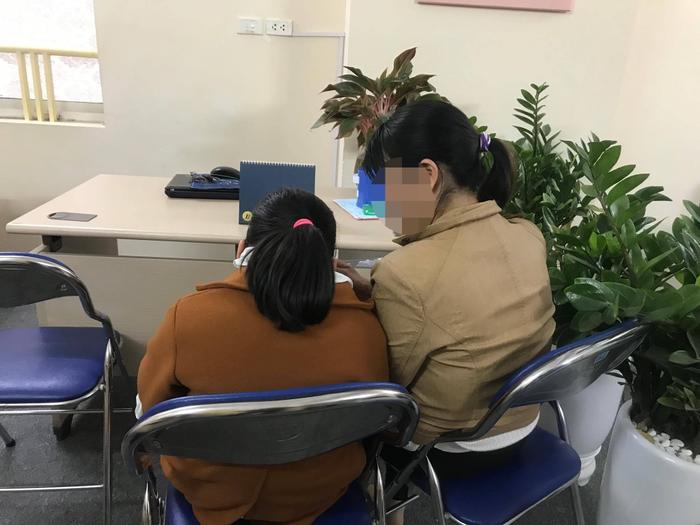 Nạn nhân cùng mẹ tại trụ sở văn phòng luật sư.