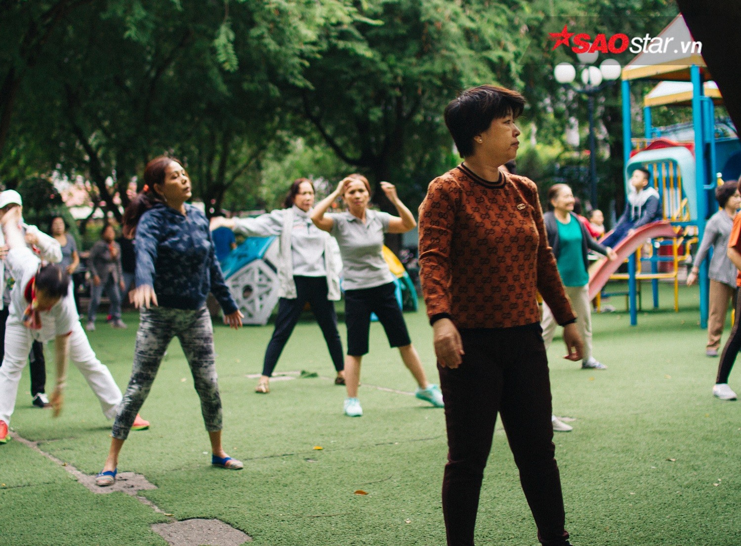 Nhiều người lớn tuổi đi tập thể dục phải khoác thêm áo ngoài, giữa cái lạnh 4h30 sáng.