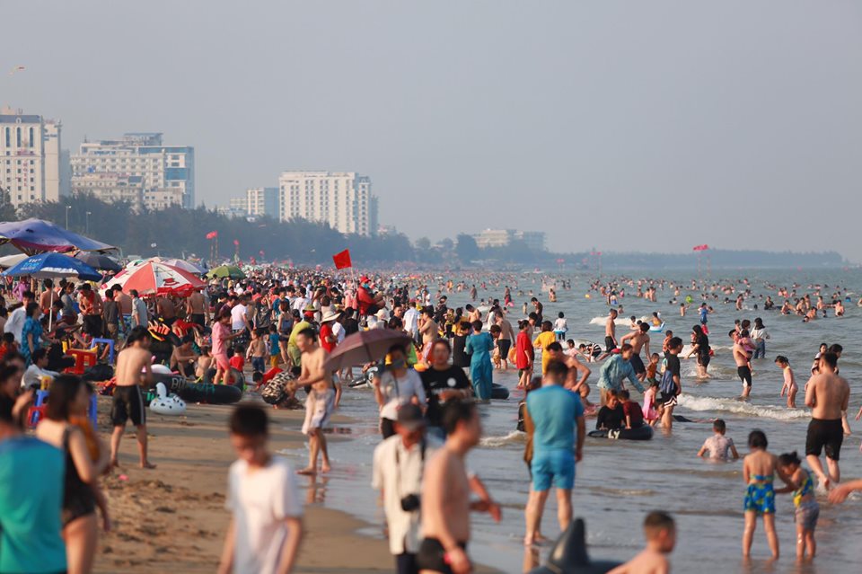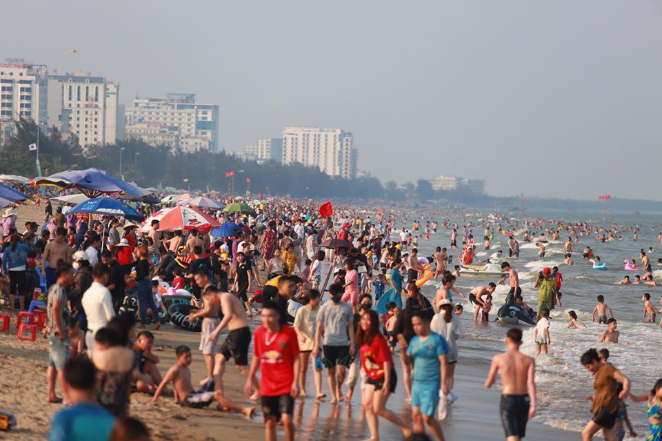 Biển Sầm Sơn đông nghịt người trong ngày nghỉ lễ 30/4.
