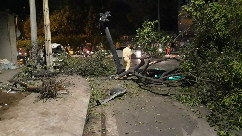 Cây xanh bị quật ngã. Ảnh: VNE.