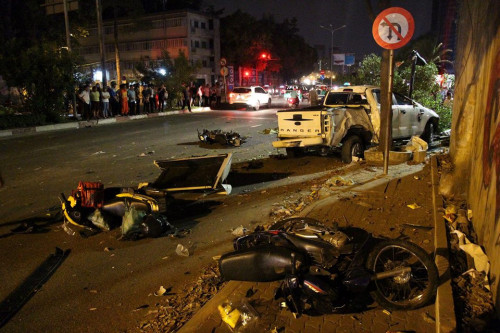 Theo thông tin ban đầu, khoảng 0h ngày 21/4, trên đường Nguyễn Hữu Cảnh (TP. HCM), xe ô tô bán tải Ford Ranger do một tài xế (chưa rõ danh tính) chạy với tốc độ cao theo hướng từ cầu Sài Gòn về trung tâm TP. HCM. Khi còn cách giao lộ Nguyễn Hữu Cảnh - Nguyễn Bỉnh Khiêm (quận 1), do không làm chủ được tay lái đã tông trúng 6 xe máy đang dừng đèn đỏ, hất nhiều người nằm la liệt trên đường, tông gãy một trụ đèn giao thông và cây xanh.
