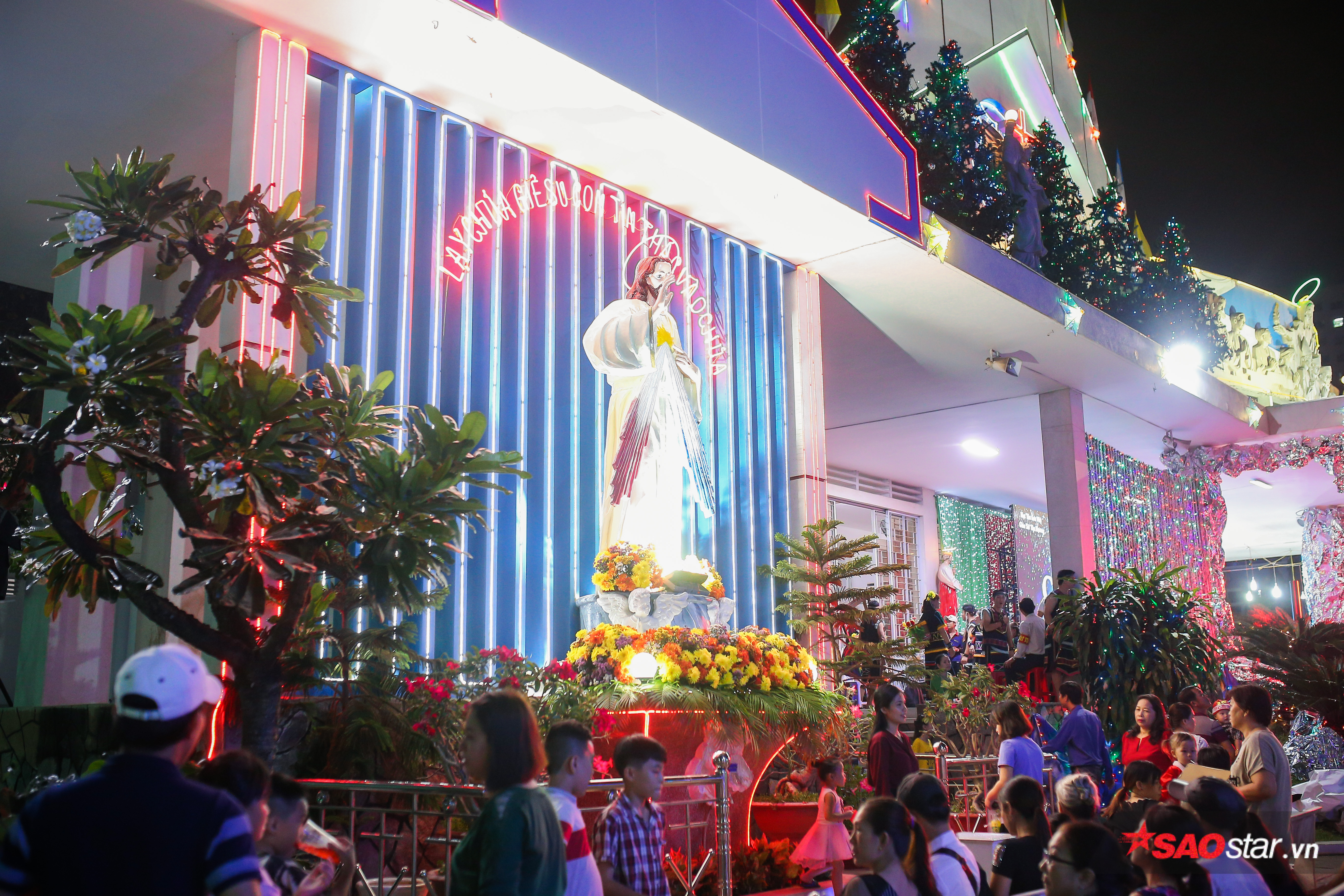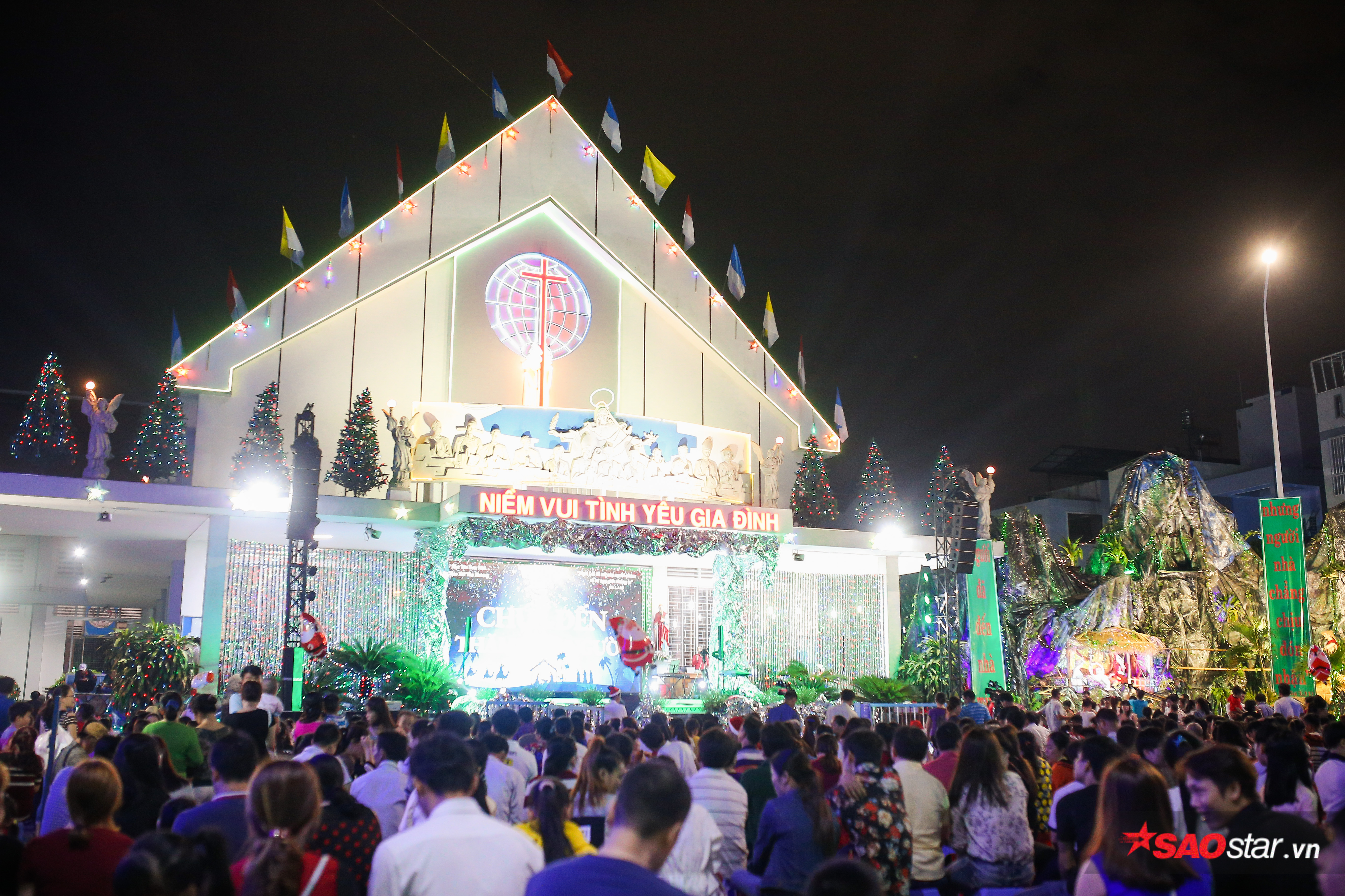 Tại thành phố Hồ Chí Minh, mọi người cũng đổ về các nhà thờ lớn để đón đêm Giáng sinh an lành. Ai nấy đều tỏ ra hào hứng với không khí nô nức tại đây.