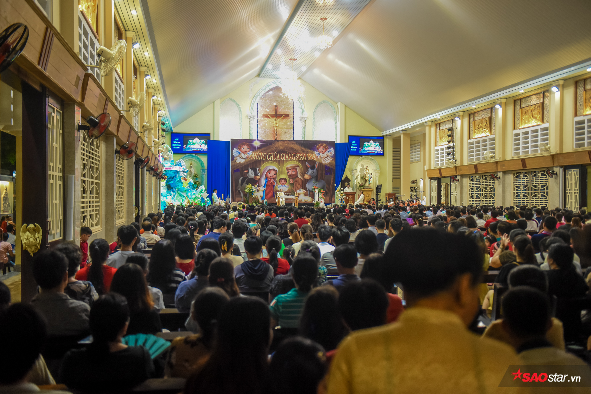 Bên trong nhà thờ chật người đón Giáng sinh.
