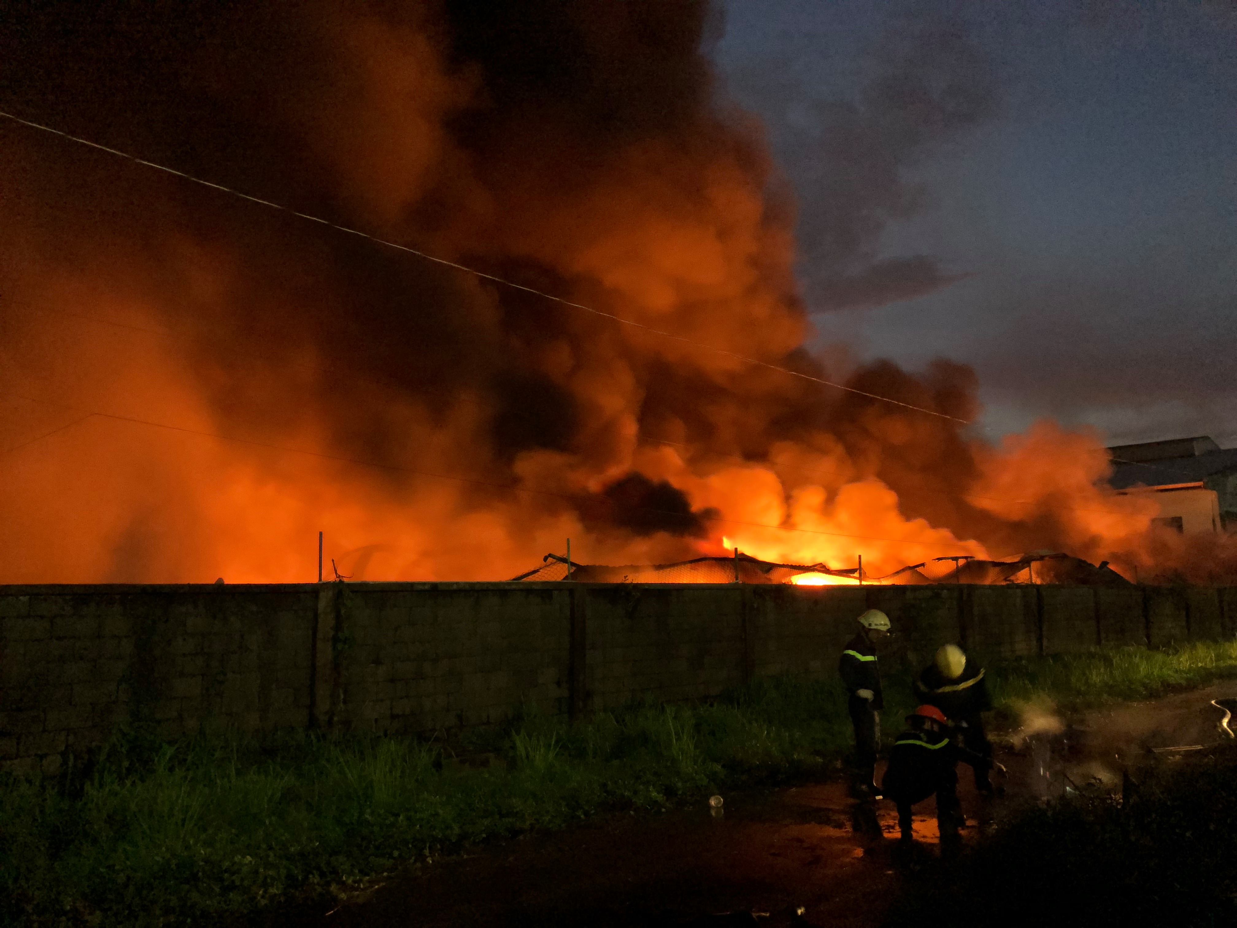 Lửa xuất phát từ kho hàng, nhanh chóng lan sang các kho giấy thiêu rụi hàng ngàn mét vuông nhà xưởng.