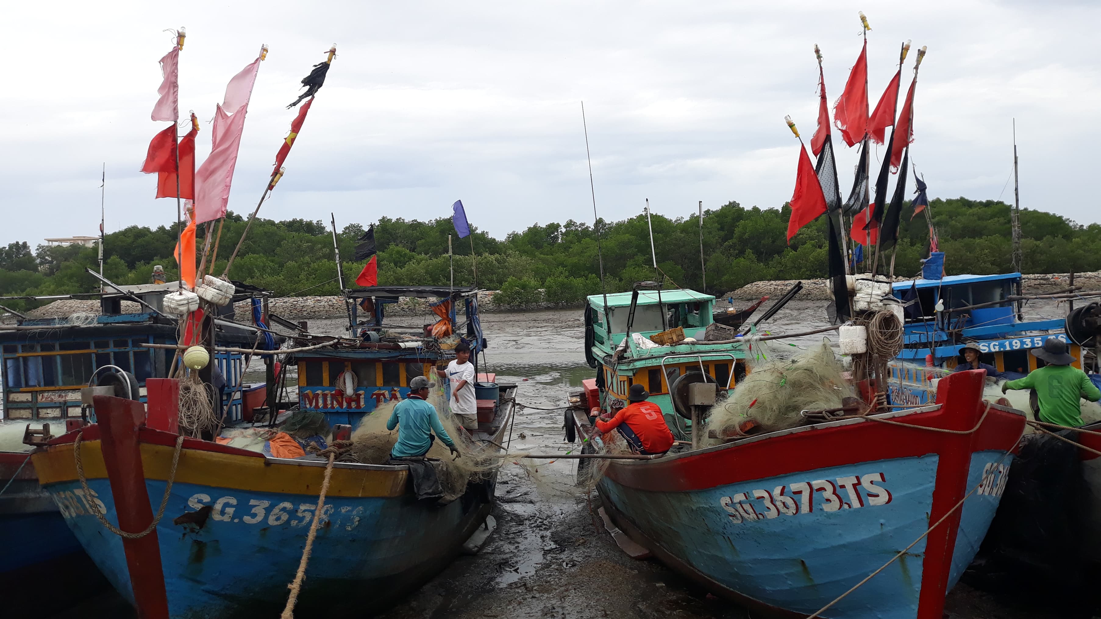 Sáng 24/11, hàng nghìn người dân ở huyện Cần Giờ, TP.HCM đã được chính quyền địa phương thực hiện việc di tản, đưa người dân đến các trường học, đồn biên phòng ở huyện để tránh bão số 9 trong cơn mưa.