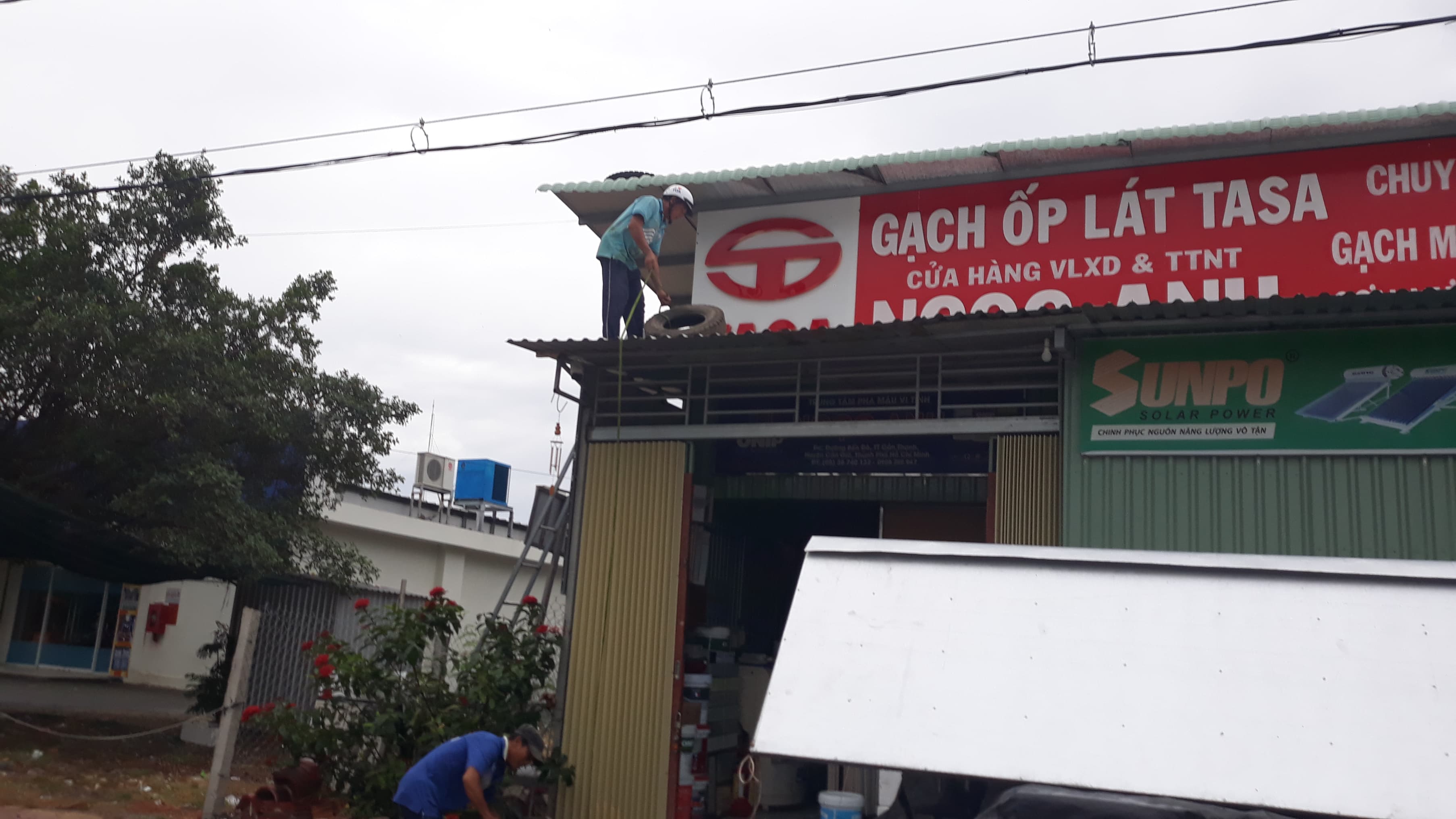 Người dân thực hiện việc chằng chống nhà cửa để đối phó với cơn bão số 9.