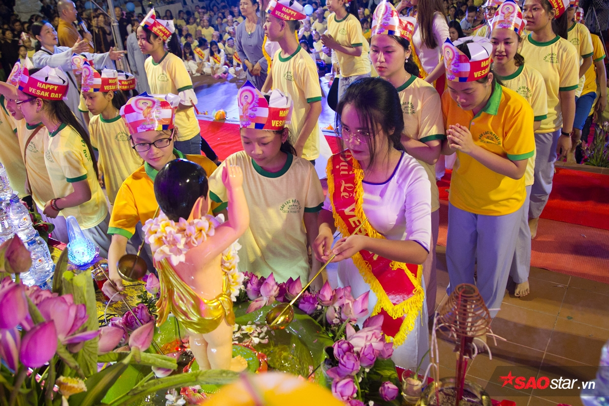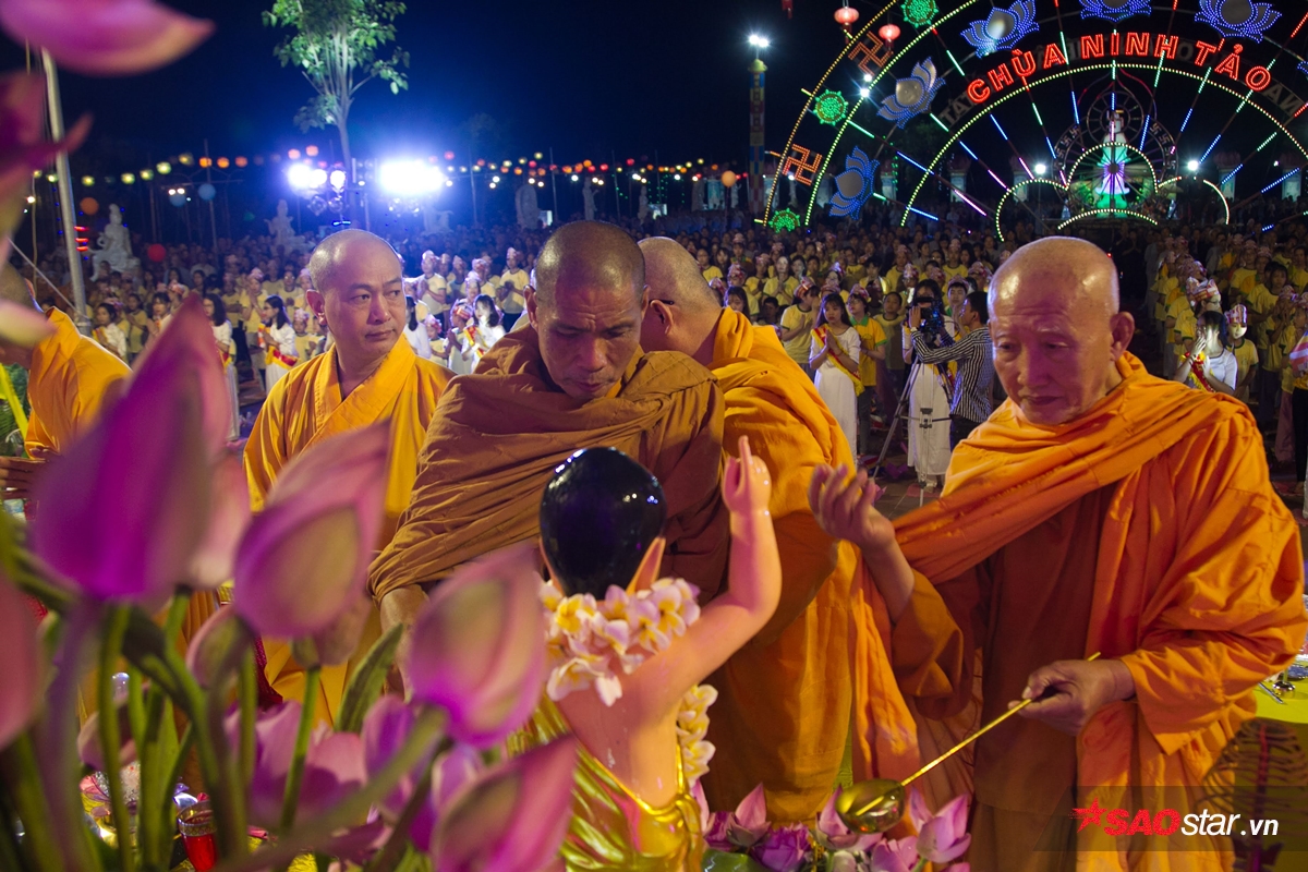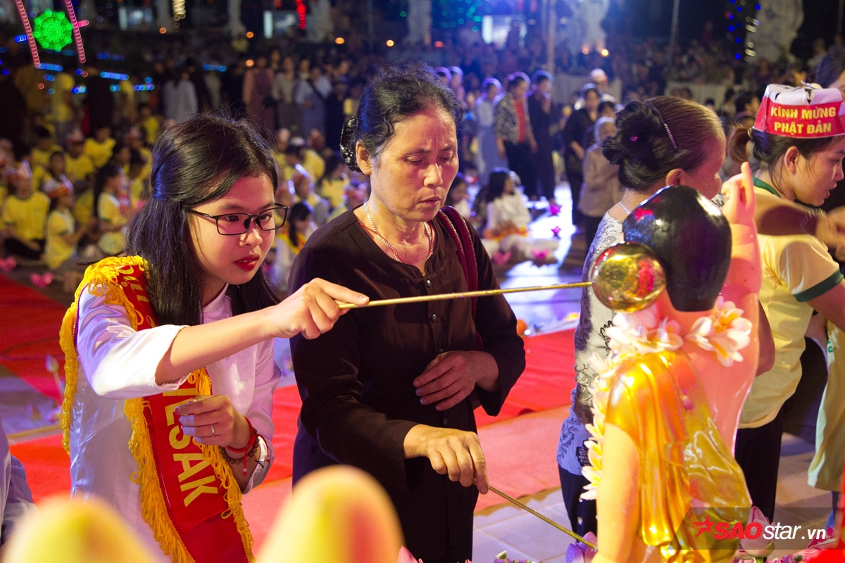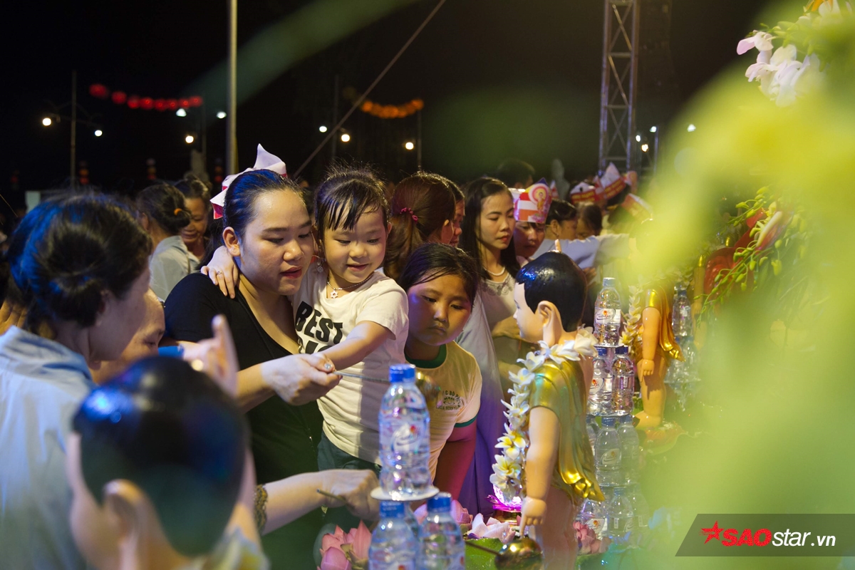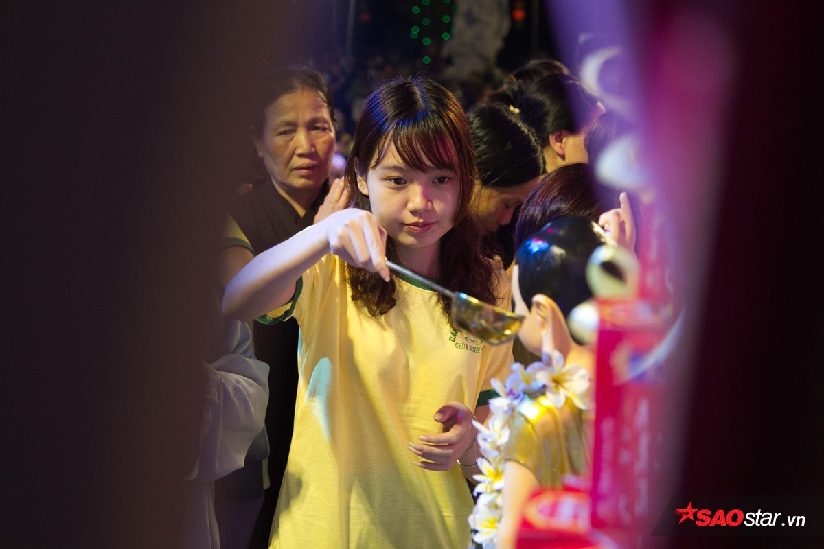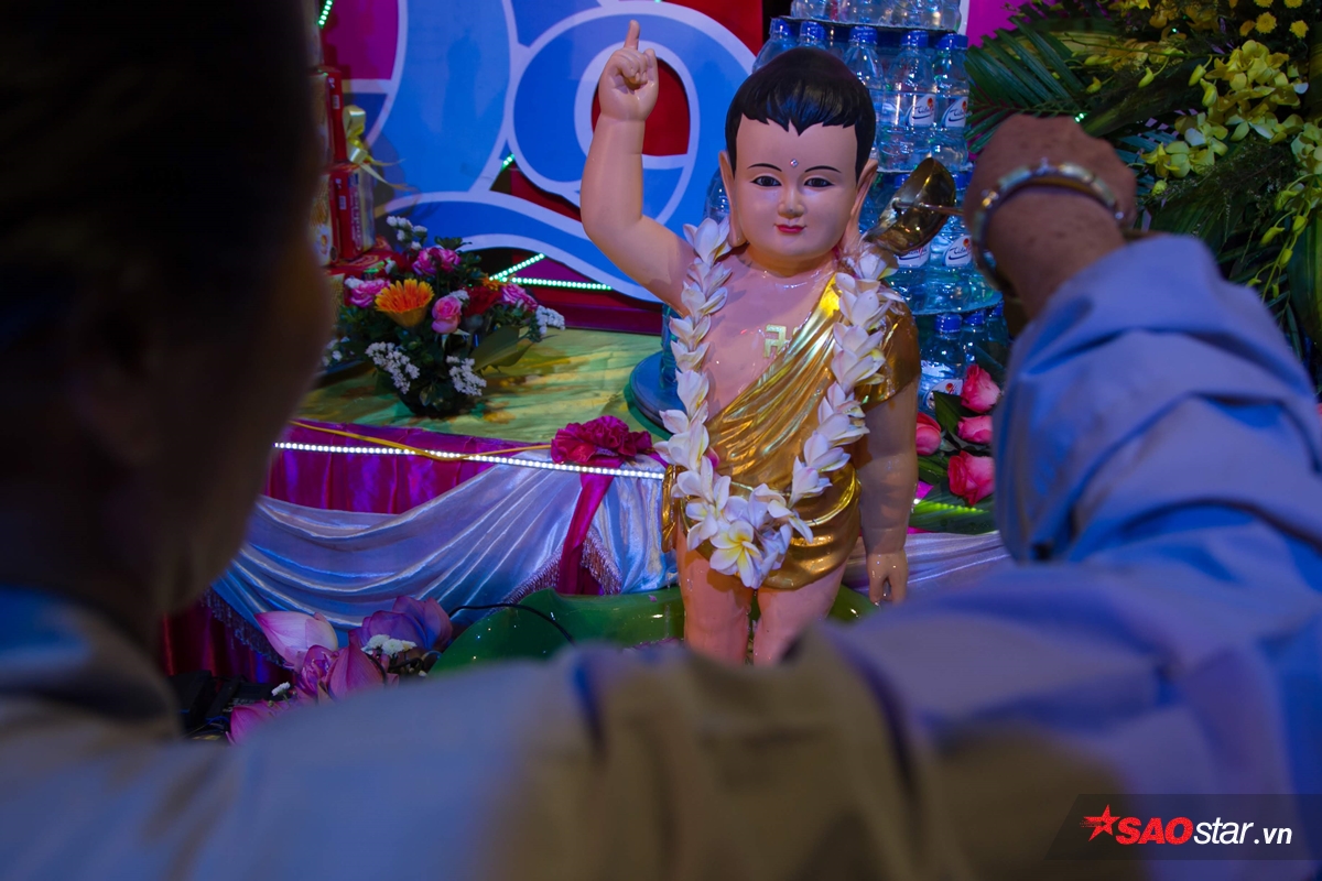 Sau khi niệm kinh, họ làm lễ tắm Phật.