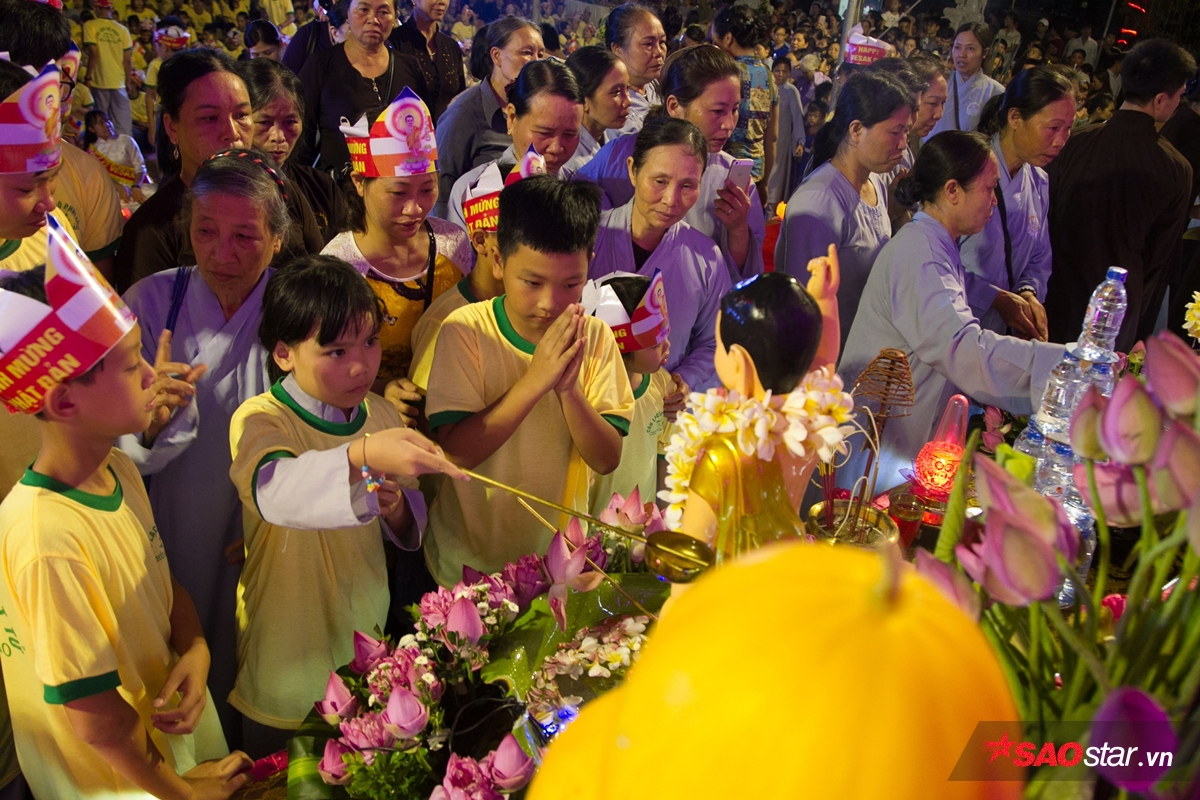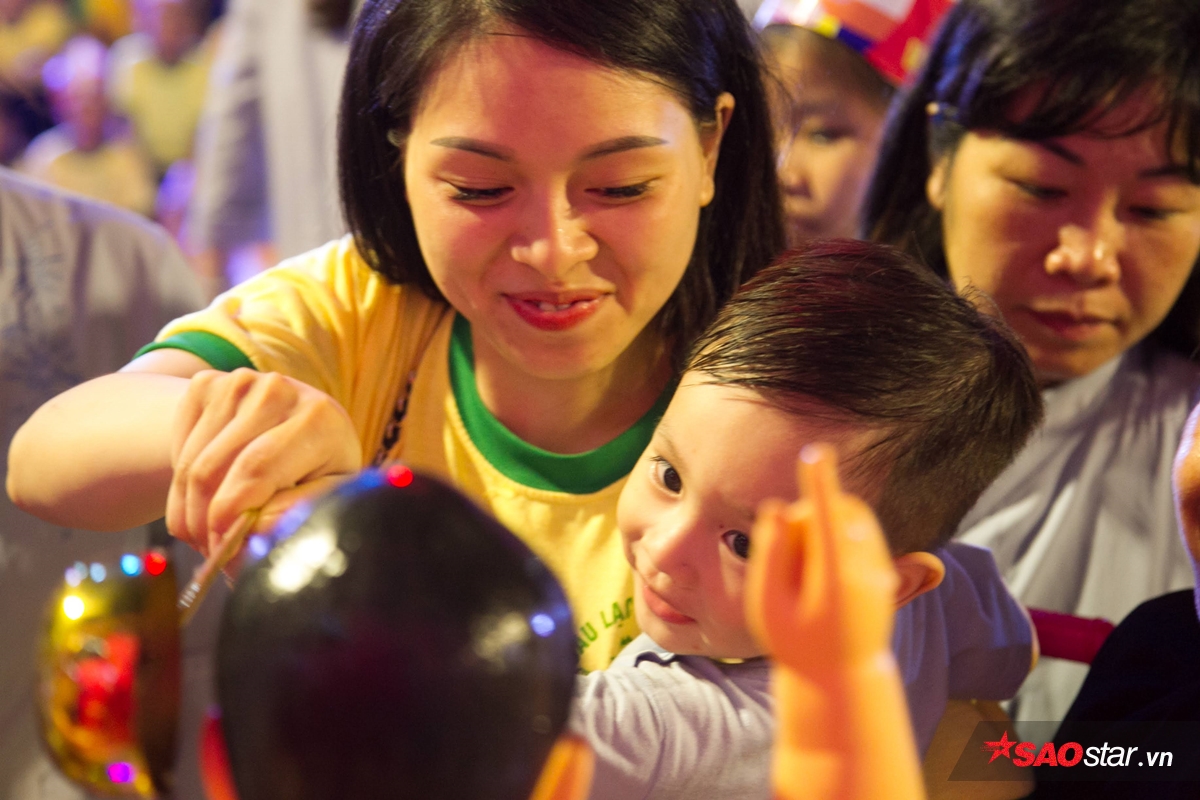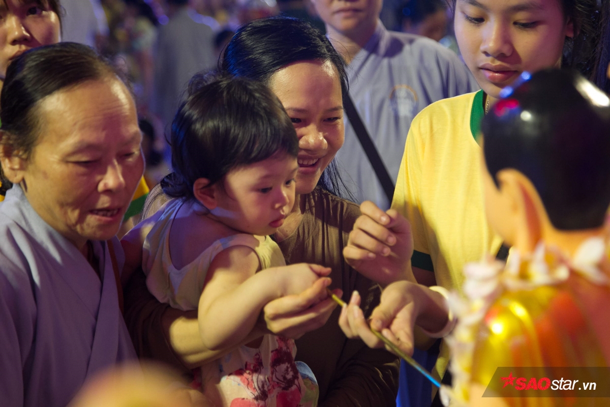 Nhiều người đem theo cả con nhỏ đến dự lễ Phật đản.