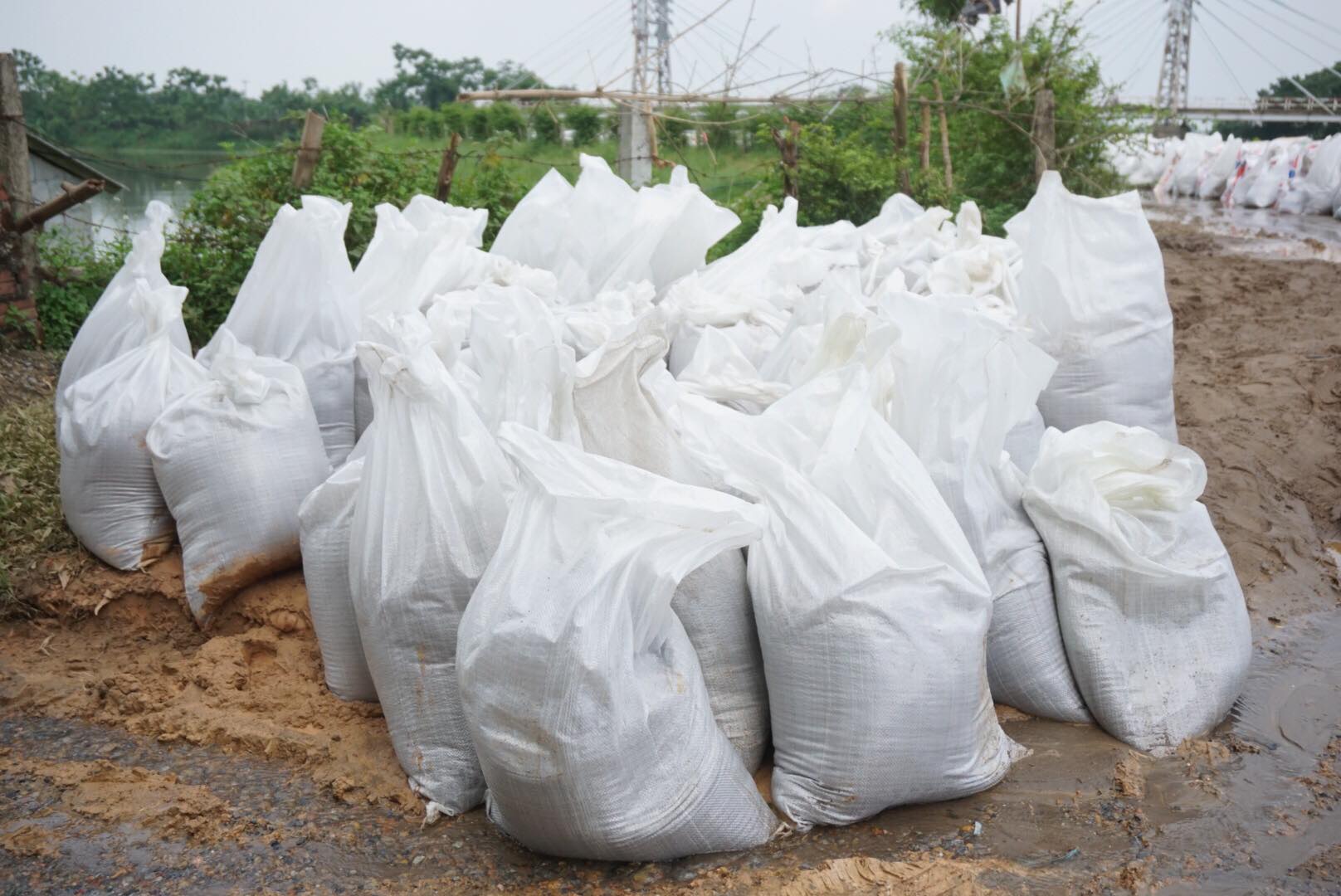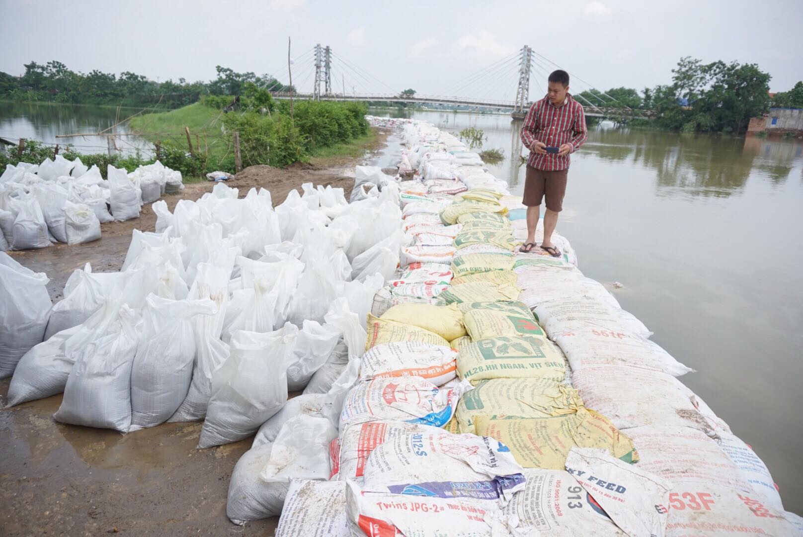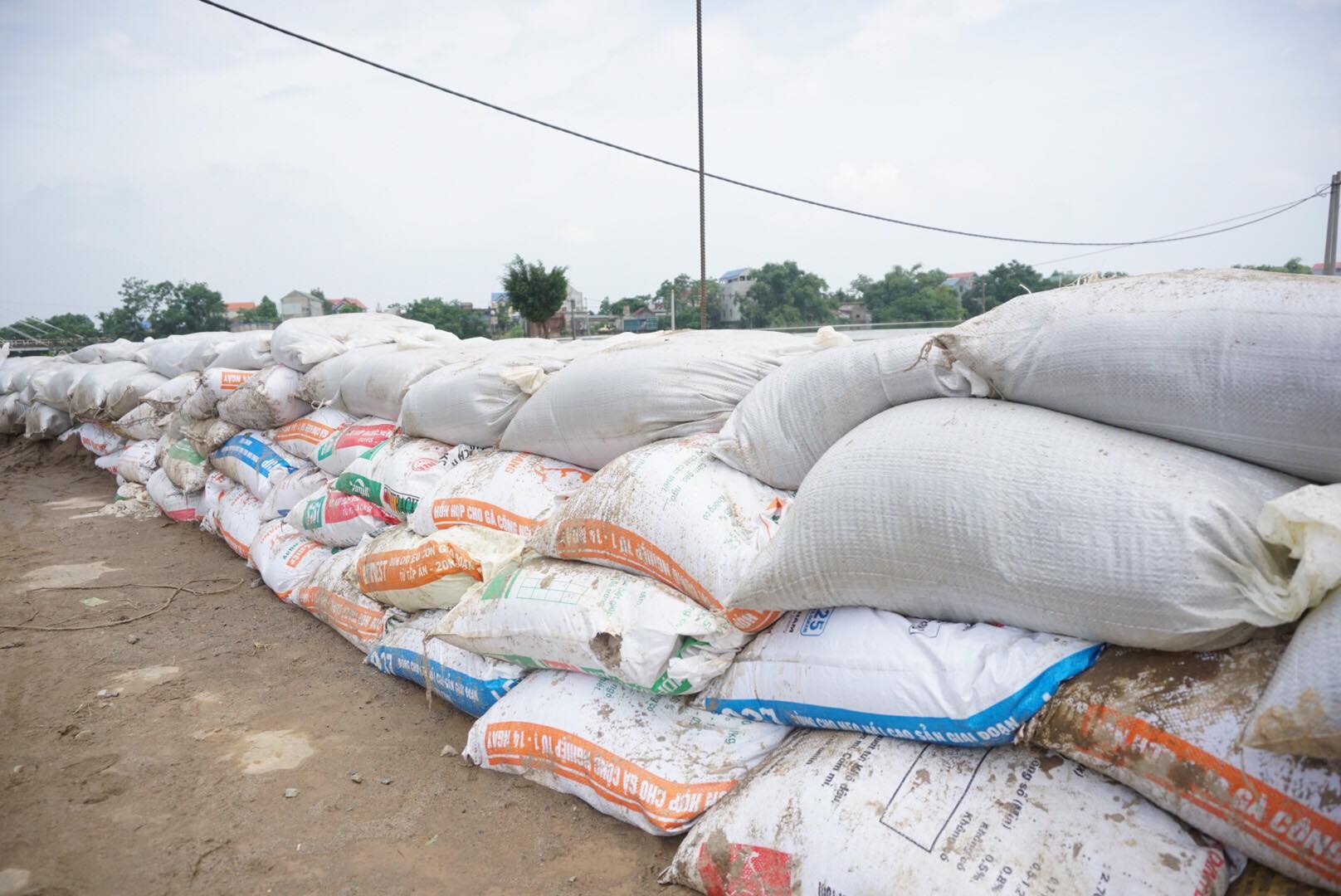 Trưa 31/7, mực nước sông Bùi đoạn qua huyện Chương Mỹ, Hà Nội đã giảm 30cm so với mực nước ngày 30/7. Dọc đường bờ đê dài khoảng 2km trước đó được lực lượng chức năng cùng người dân nỗ lực dùng bao tải cát đắp nên đã ngăn chặn được nước tràn vào khu dân cư.