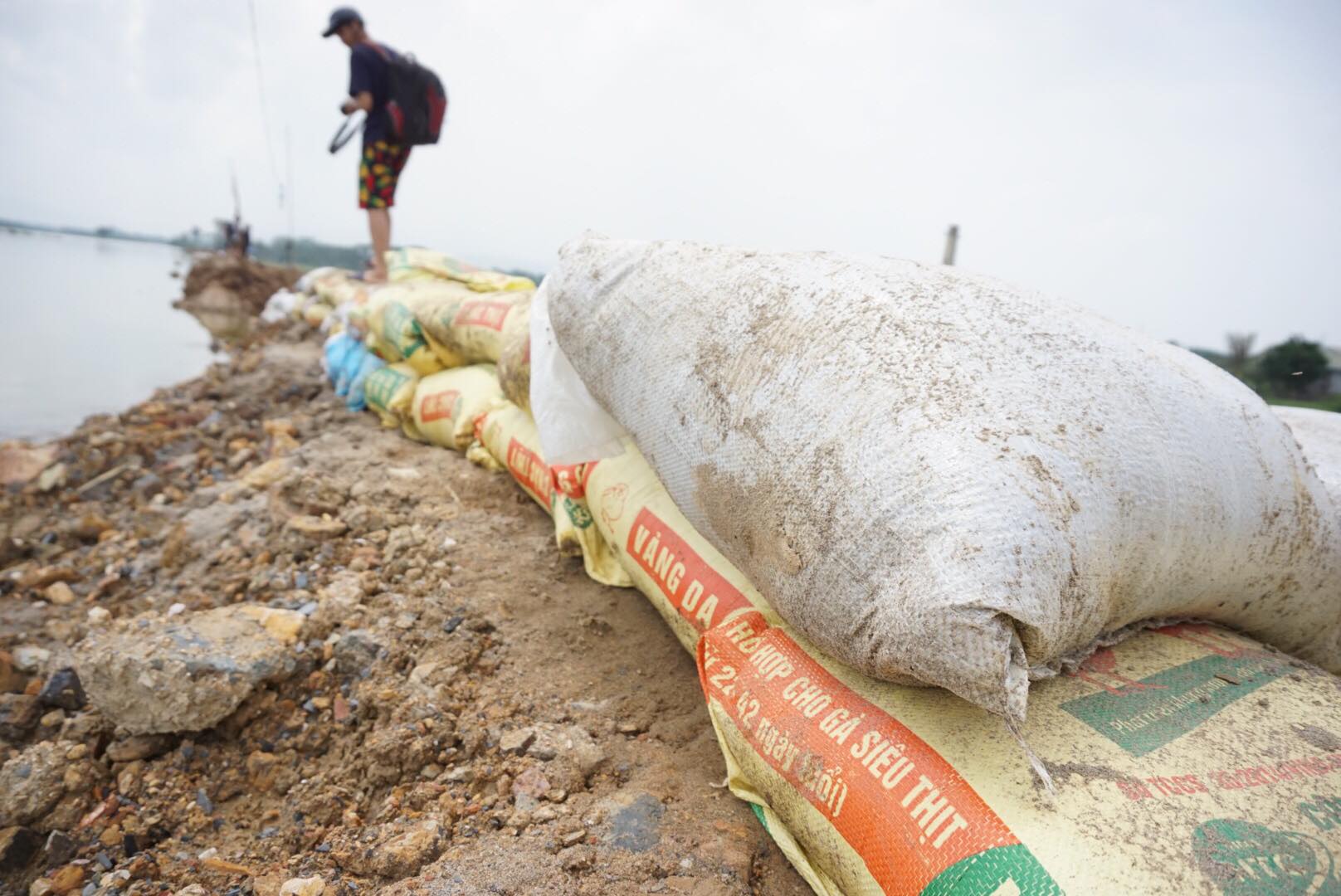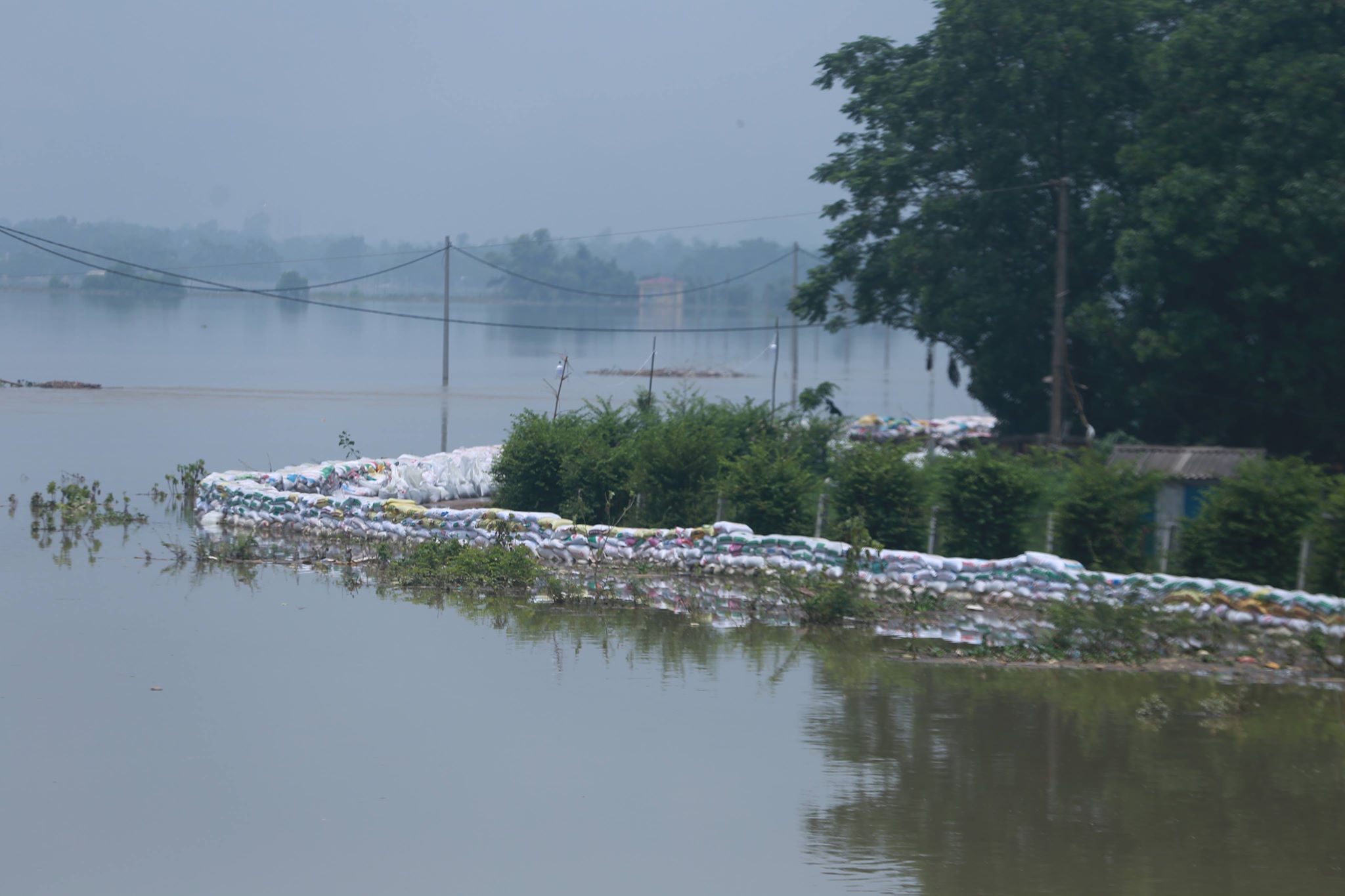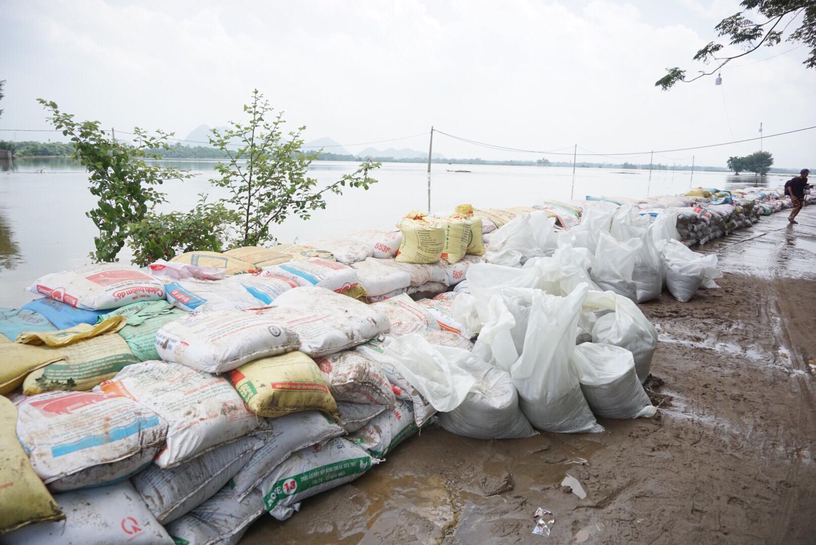 Trưa 31/7, mực nước sông Bùi đoạn qua huyện Chương Mỹ, Hà Nội đã giảm 30cm so với mực nước ngày 30/7. Dọc đường bờ đê dài khoảng 2km trước đó được lực lượng chức năng cùng người dân nỗ lực dùng bao tải cát đắp nên đã ngăn chặn được nước tràn vào khu dân cư.