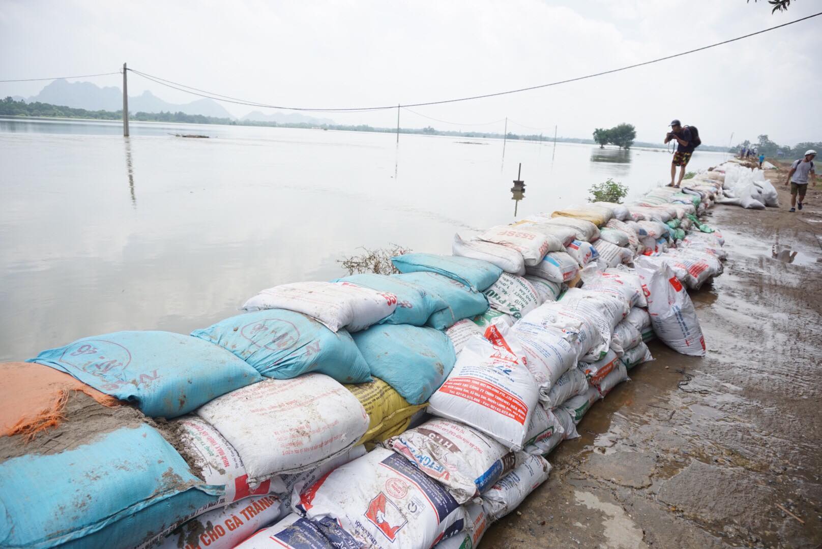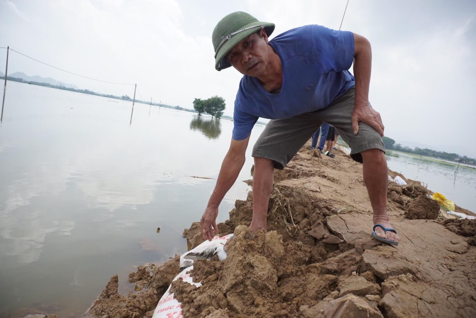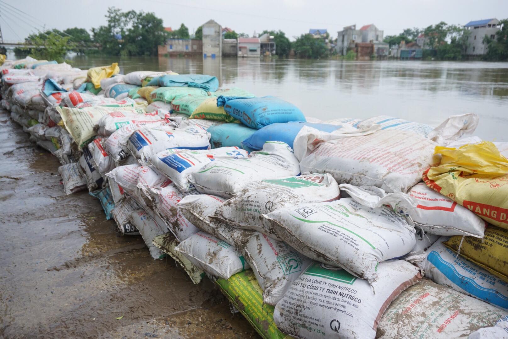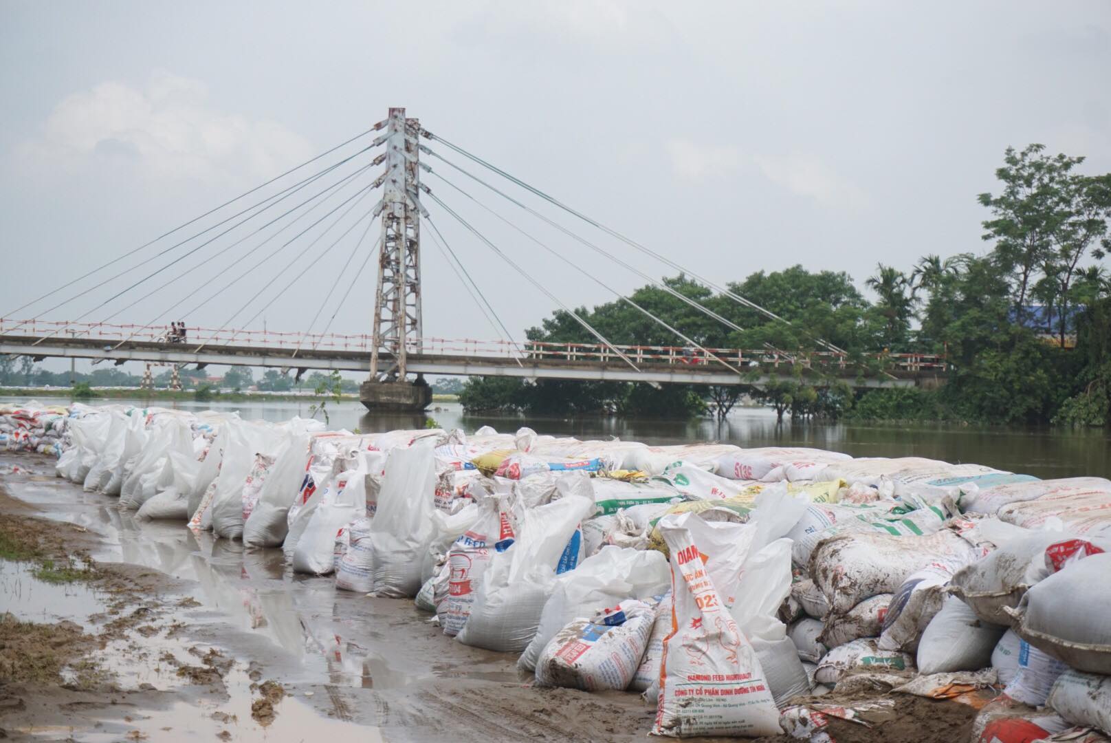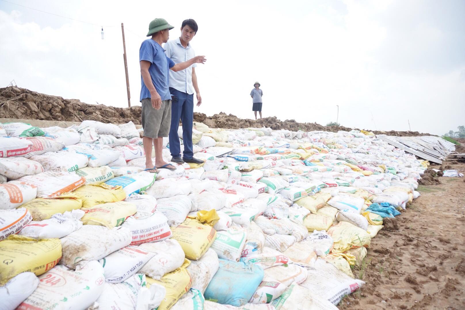 Đến sáng và chiều nay, tất cả lực lượng từ công an, quân đội đến dân quân tự vệ vẫn trực 24/24 tại khu vực đê sông Bùi qua địa bàn huyện, tại những vị trí xung yếu.