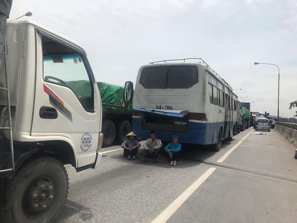 Ùn tắc quá lâu chưa có dấu hiệu hạ nhiệt, các tài xế xuống đường trò chuyện.