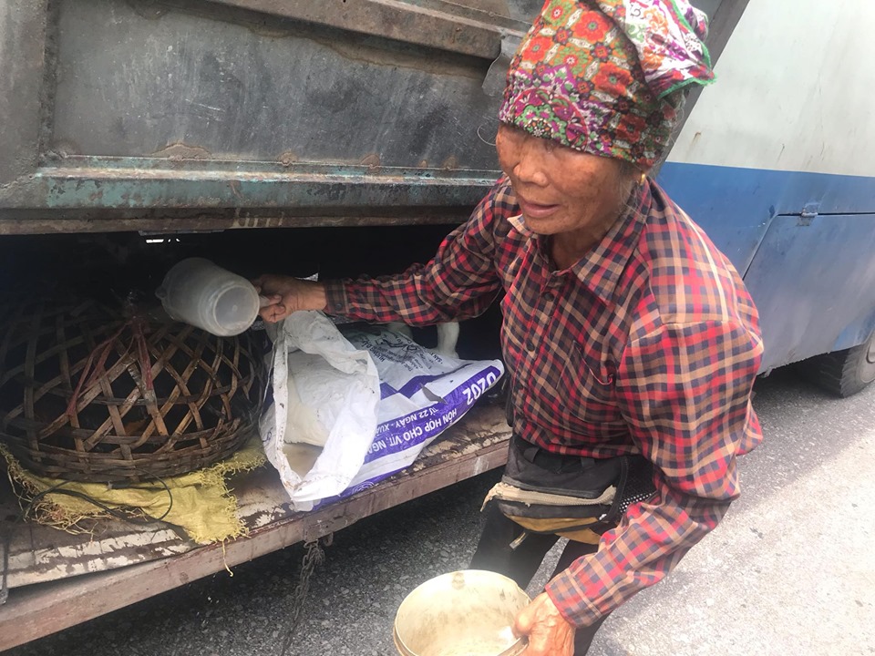 Nhiều người ngồi vật vờ dưới đường chờ đợi.