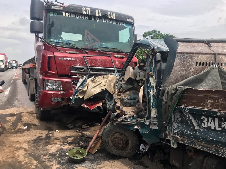 Giao thông Quốc lộ 5 ách tắc do những vụ tai nạn liên hoàn xảy ra.