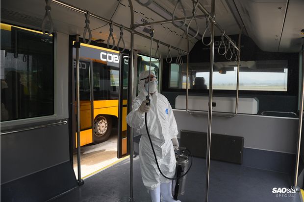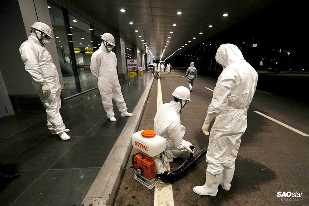 Nhận nhiệm vụ phụ trách vệ sinh toàn bộ các chuyến tàu bay từ vùng dịch về nước những ngày này, trách nhiệm của chị Giản Thị Hồng Hạnh, Đội trưởng Đội vệ sinh tàu bay tại Sân bay Vân Đồn luôn đè nặng trên vay. Khi hành khách từ máy bay xuống, chị Hạnh cùng đội ngũ nhân viên lại hối hả lên tàu bay dọn dẹp vệ sinh. Từng vị trí, ngóc ngách trên tàu bay đều được dọn dẹp sạch sẽ…