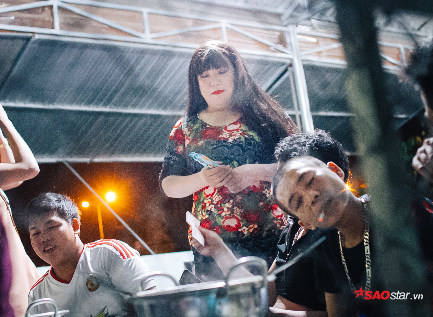 “Chị đi hát cũng được 3 năm mấy rồi. Xưa thì ở Sài Gòn, cơ mà khách hổng mặn mà lắm nên về đây. Hẻo lánh với cực xíu nhưng công nhân thương hơn nên cũng đủ bữa sống.” - chị Linh kể, tay dặm mớ son phấn, đội đầu tóc nilon, bộ ngực giả và ướm thêm chiếc váy bông,… để chuẩn bị đêm diễn. Lên đồ rồi, trông chị cũng ra dáng lắm!