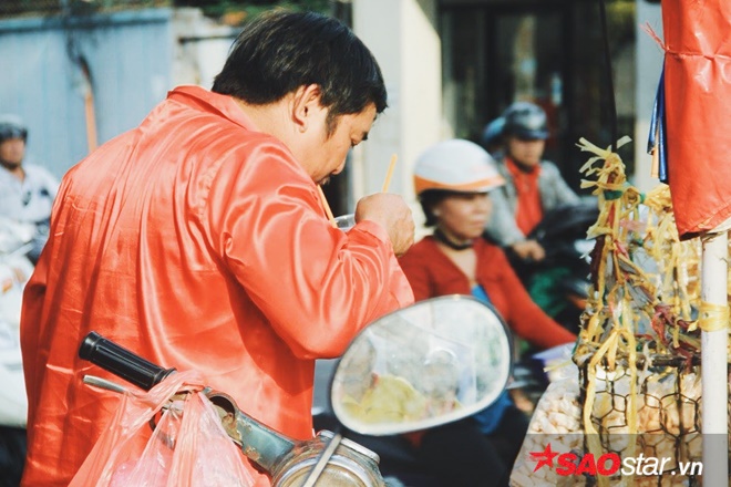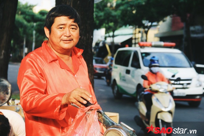 Giữa ngã 4 của con đường thuộc quận 3, cứ mỗi buổi trưa người ta lại nhìn thấy một người đàn ông bán bánh mặc bộ quần áo bà ba phi bóng màu đỏ nổi bật và gương mặt luôn tươi cười khi có khách dừng lại mua bánh.