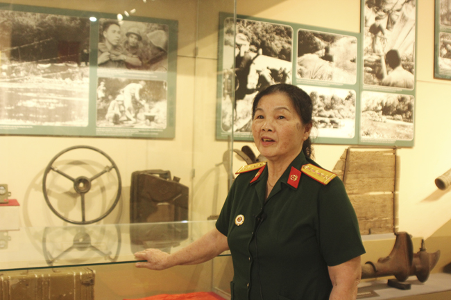 Nữ lái xe Trường Sơn Bùi Thị Vân tham quan Bảo tàng đường Hồ Chí Minh. (Ảnh: Thành An)